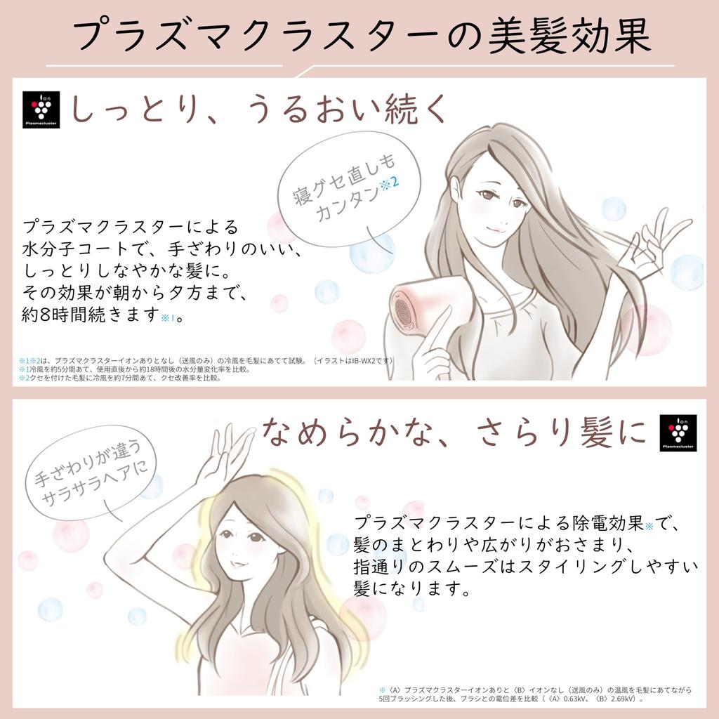*1 Measured the gloss value before and after drying the hair. Compared to the increase in gloss value before and after using "with Plasmacluster ions and with Beauty mode", "without ions and with Beauty mode", and "without ions and without Beauty mode".