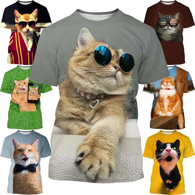 Летняя новая крутая футболка с 3D принтом «Забавный кот», крутая футболка с круглым вырезом, женская и женская летняя уличная модная футболка с короткими рукавами