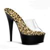 Женские туфли с леопардовым принтом, прозрачные босоножки с рисунком «рыбий рот», танцевальные туфли на тонком каблуке, каблук 15 см, платформа 5 см, YKC