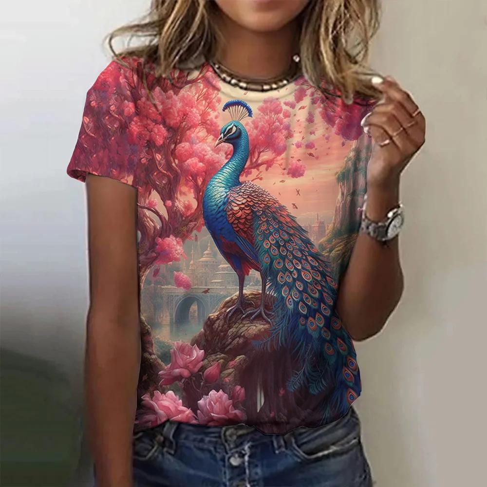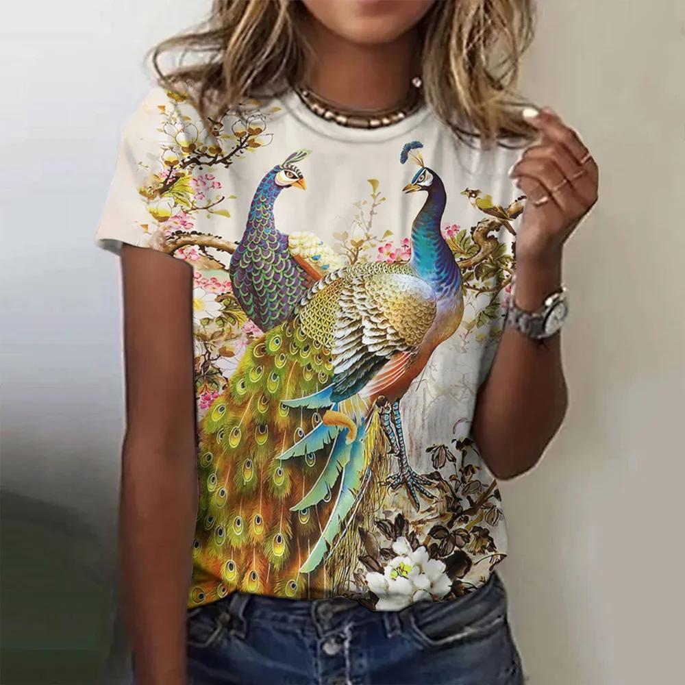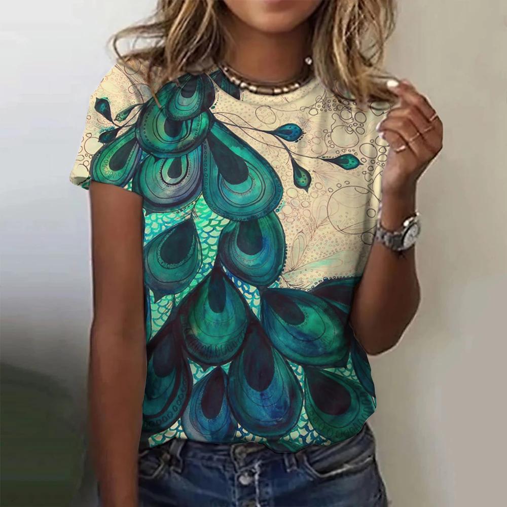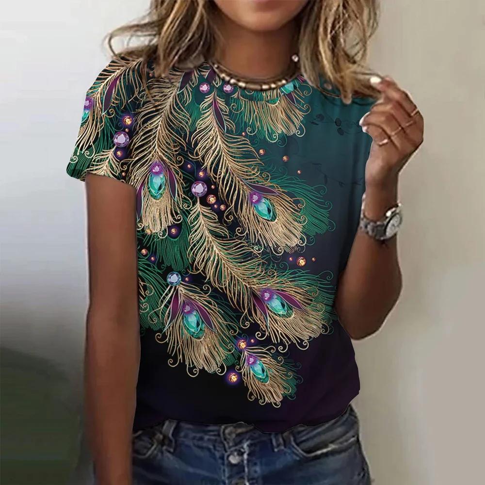 Летняя модная женская футболка с павлиньим пером и 3D принтом, топ в стиле Харадзюку, красочные индивидуальные футболки с короткими рукавами, одежда оверсайз