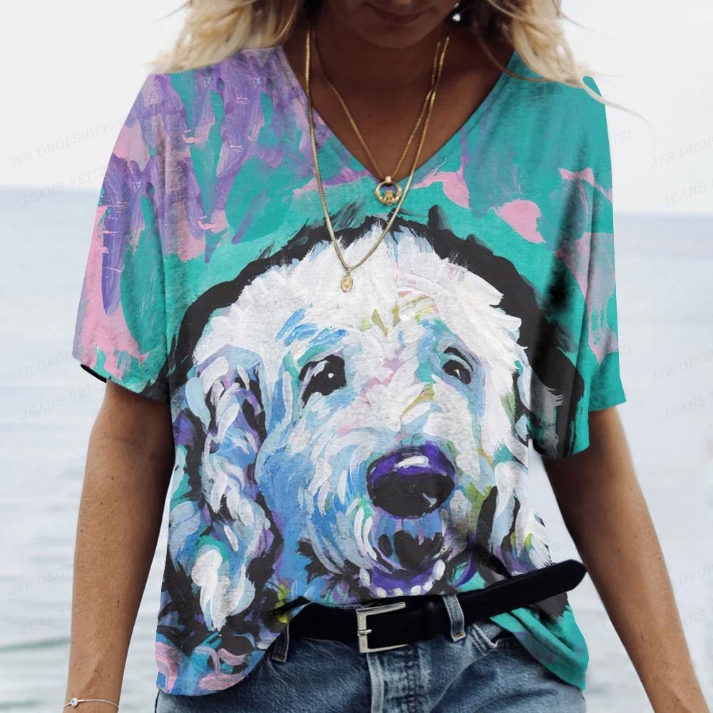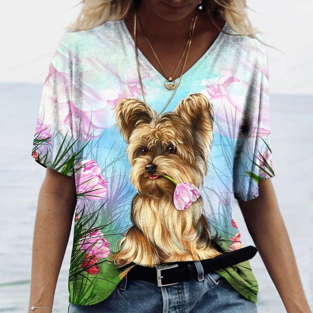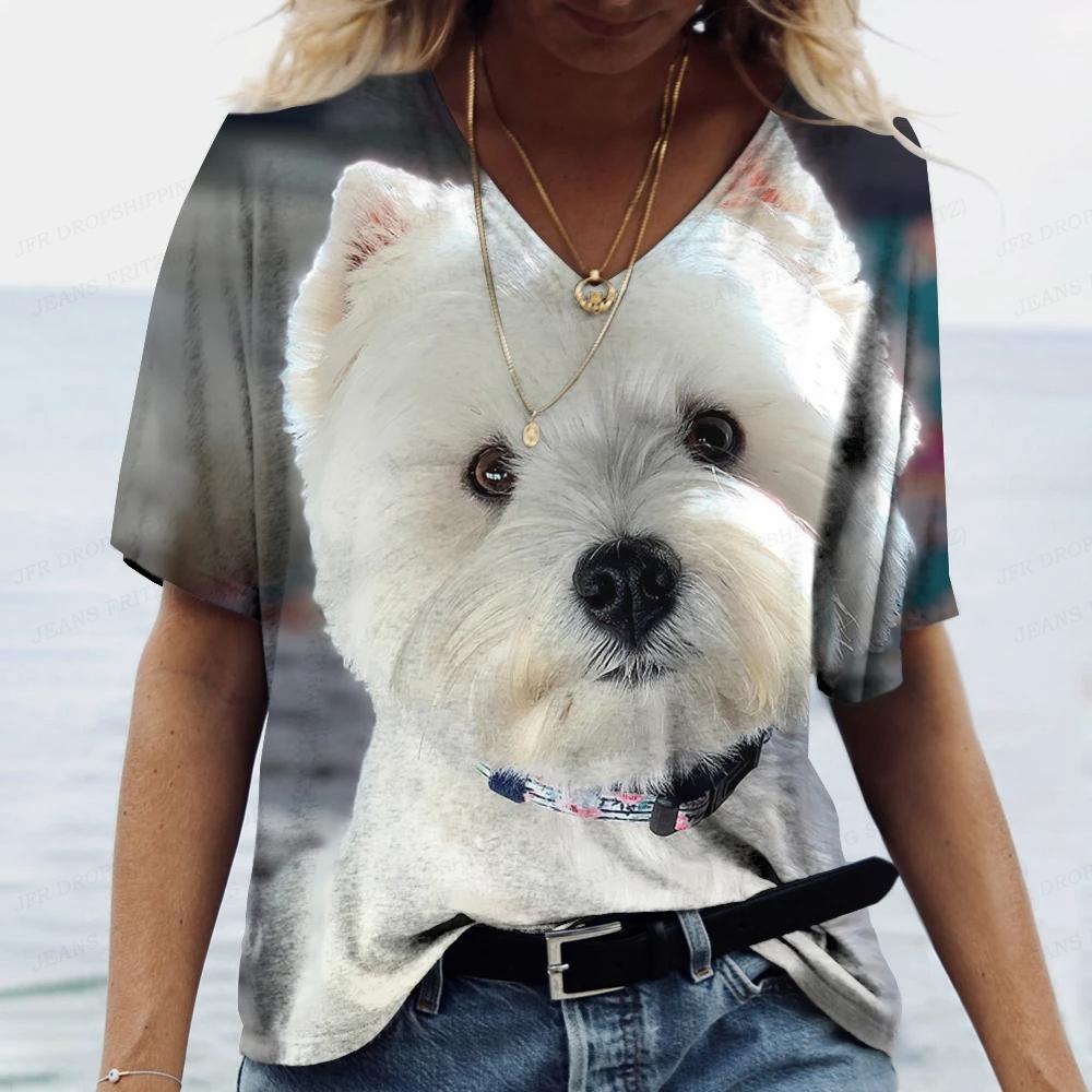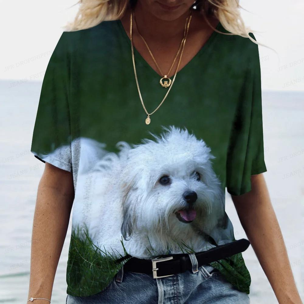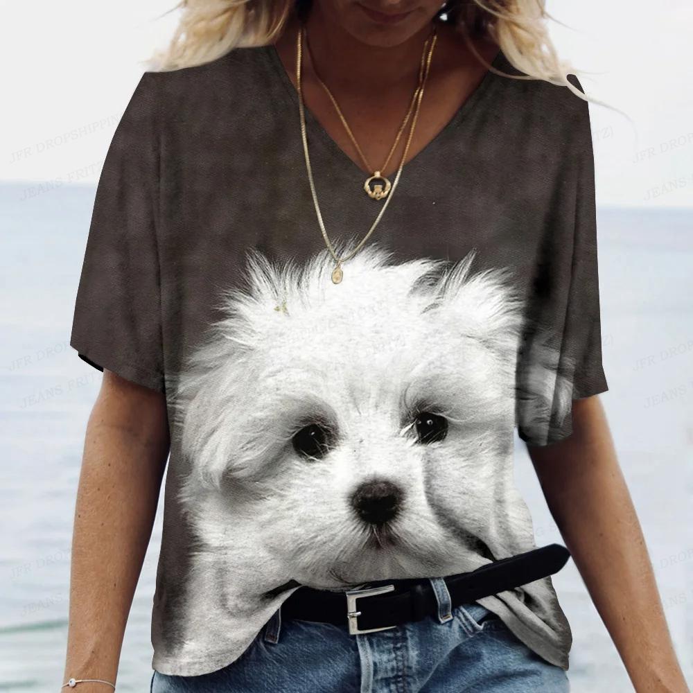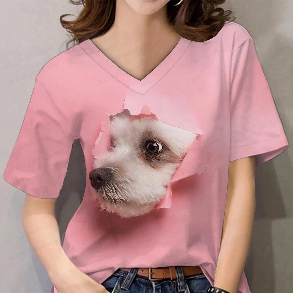 Женская футболка с изображением животных, футболка с 3d принтом милой собаки, женские модные футболки, топы с v-образным вырезом и короткими рукавами, футболки, футболка с милым домашним животным, топ Kawaii