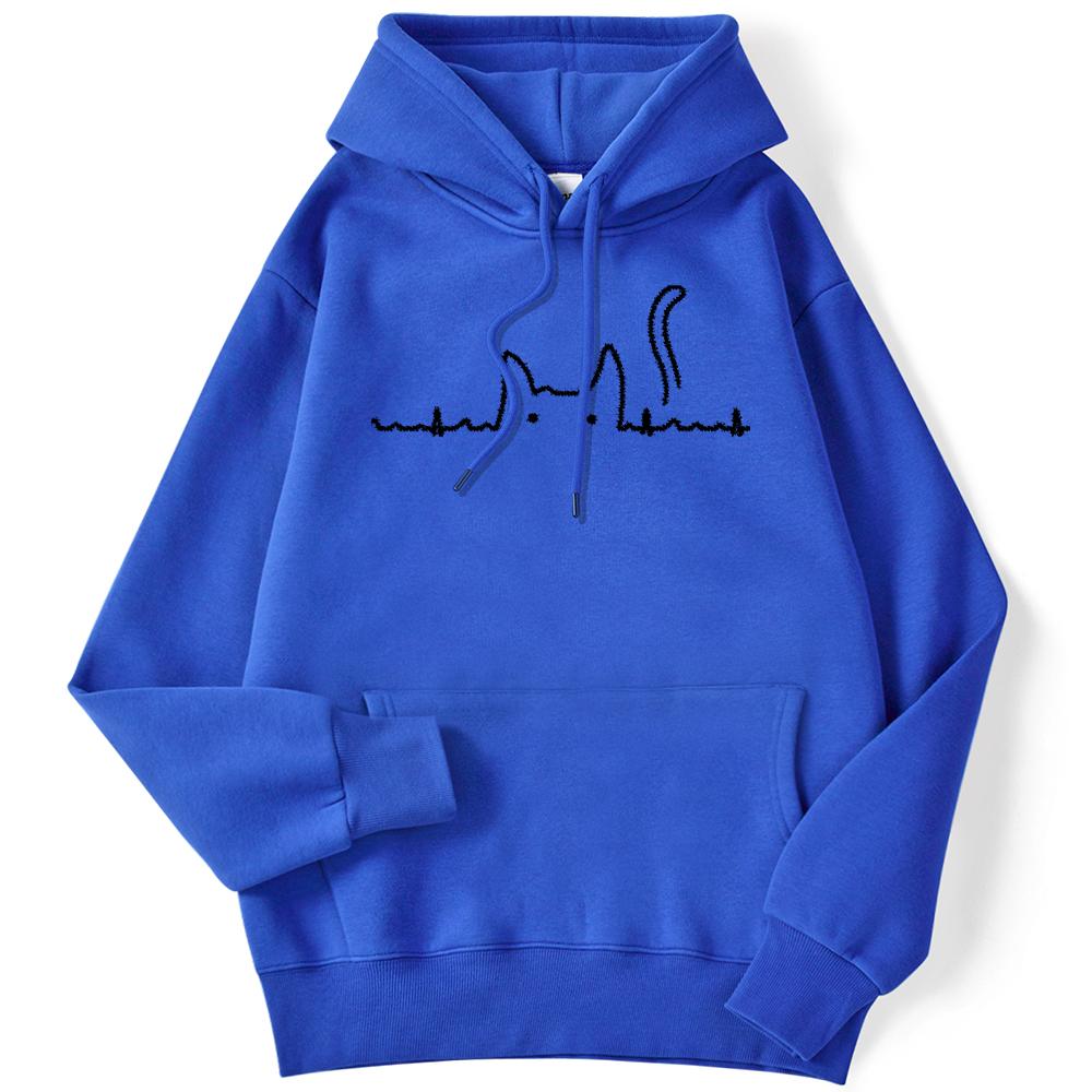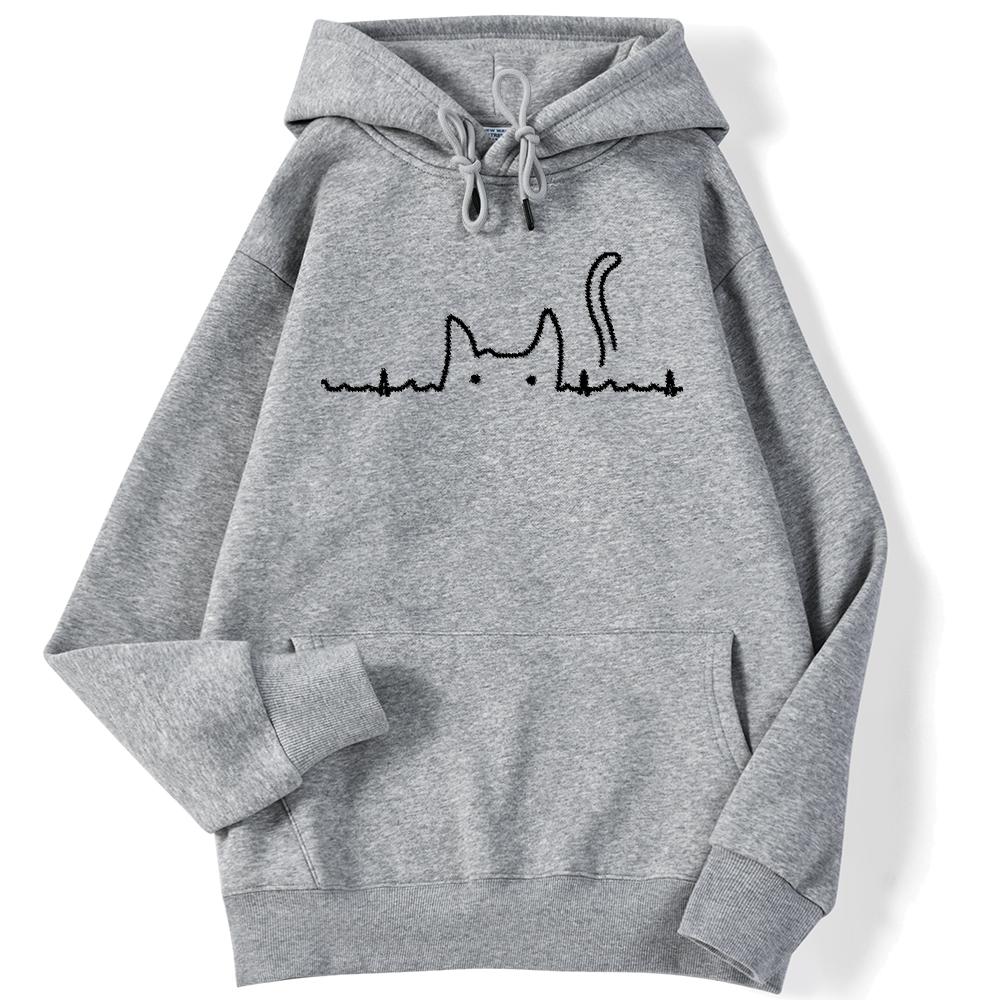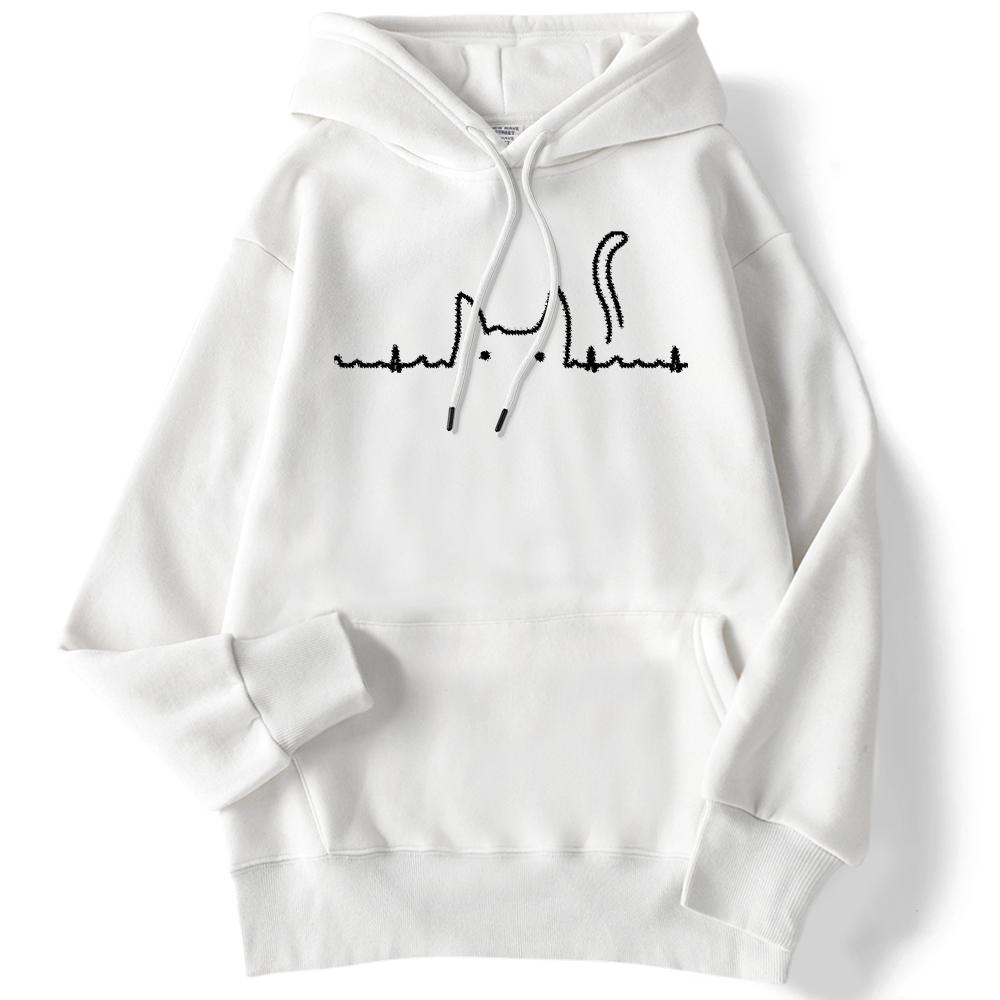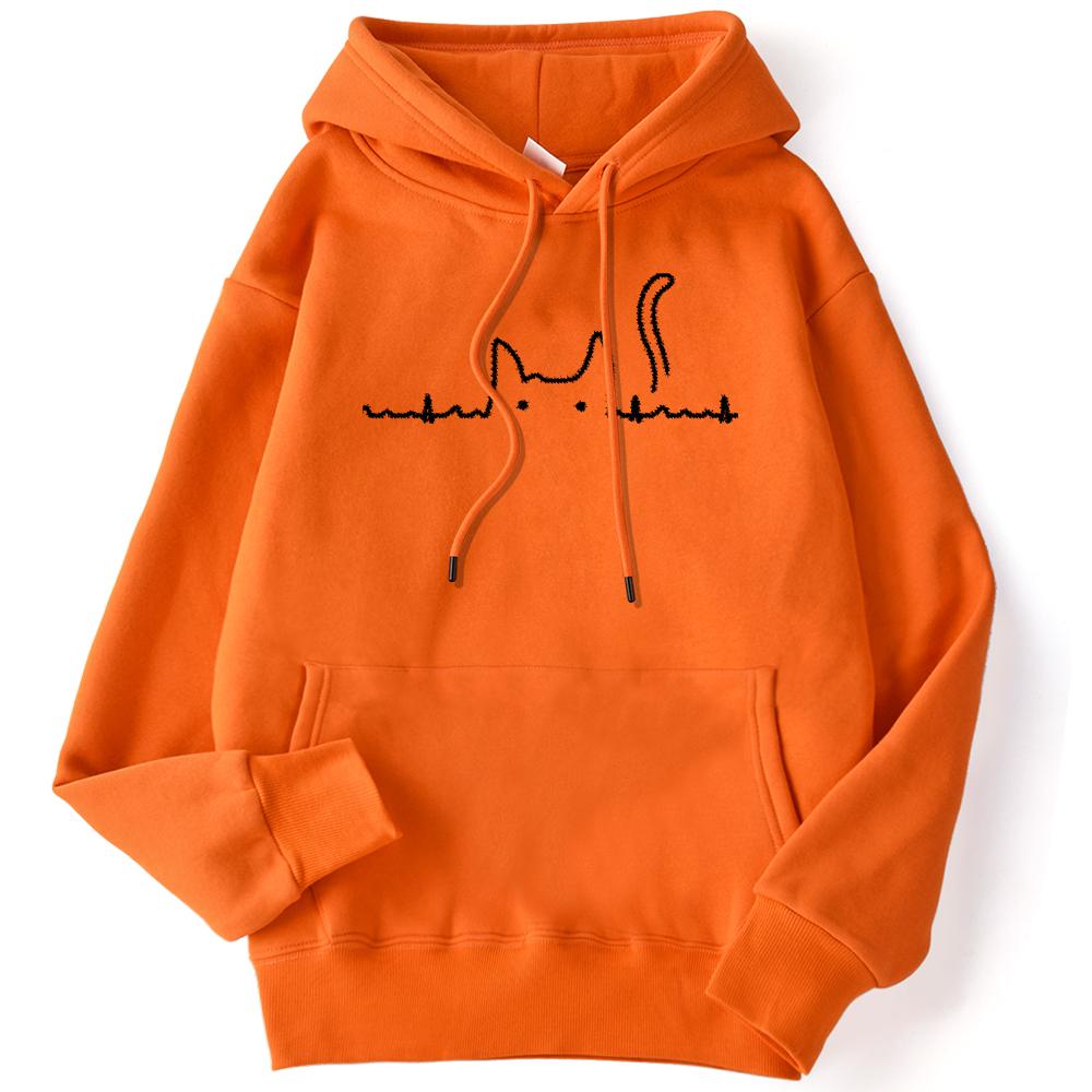 Спортивная женская толстовка с кошачьим хвостом, электрокардиограмма, кавайный пуловер с принтом, свободные толстовки с карманами, уличная одежда