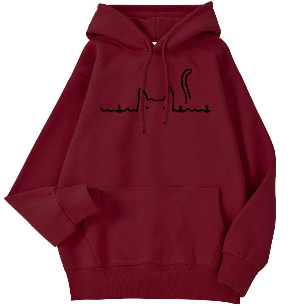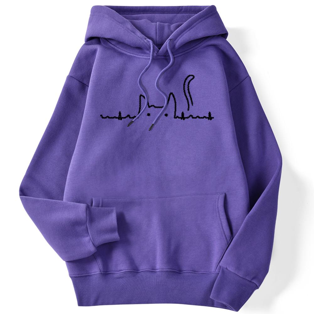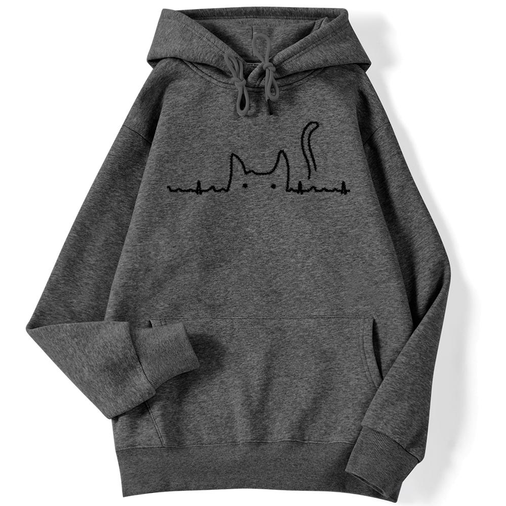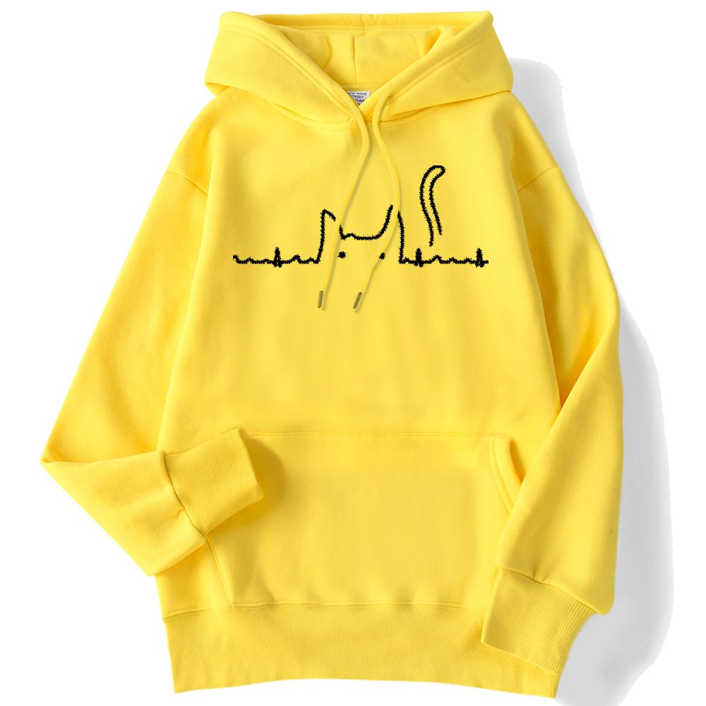 Спортивная женская толстовка с кошачьим хвостом, электрокардиограмма, кавайный пуловер с принтом, свободные толстовки с карманами, уличная одежда