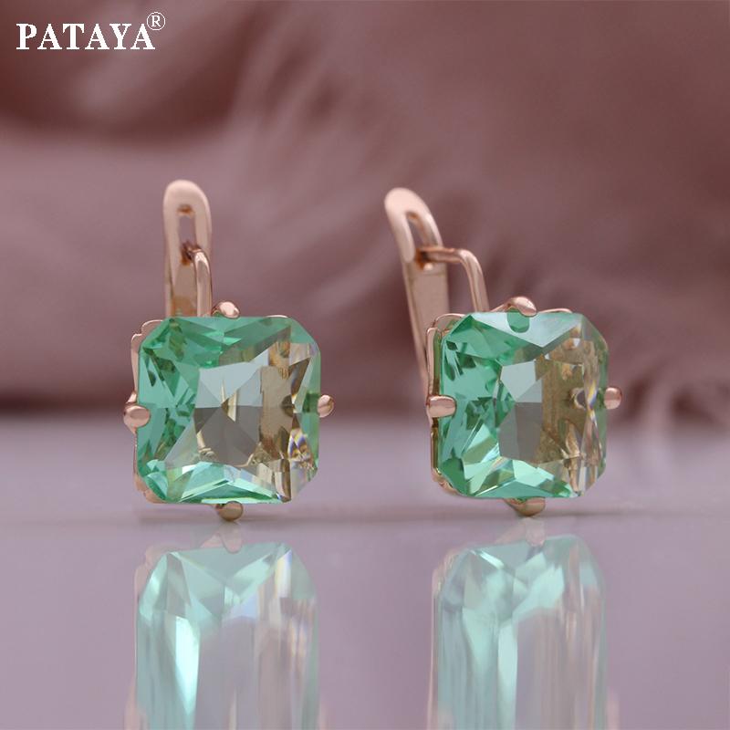 Серьги PATAYA Sweet Girl с квадратным вырезом и инкрустацией из искусственного циркония розового цвета — купить товар онлайн с бесплатной доставкой по всему миру!