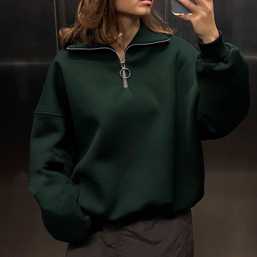 GMXIA Свитшот с воротником, осенне-зимний женский стиль унисекс, модный уличный тренд, свободный свитшот на молнии с лацканами