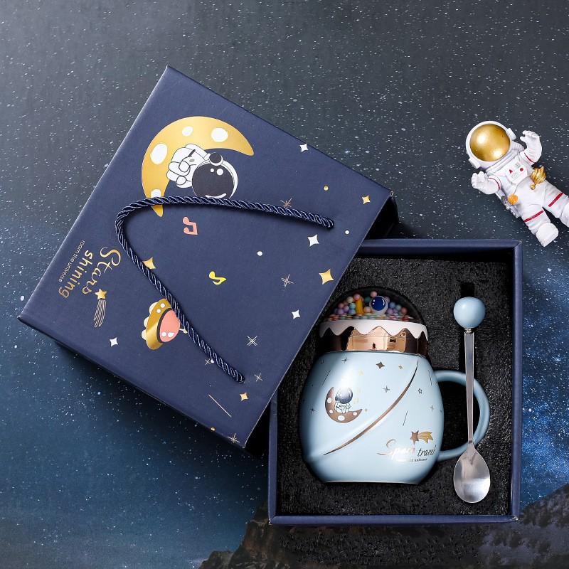 Керамическая кружка серии «Астронавт» с крышкой, ложка, милая деловая подарочная коробка, креативная керамическая чашка для кофе, чая, праздничные подарки на день рождения для девочек