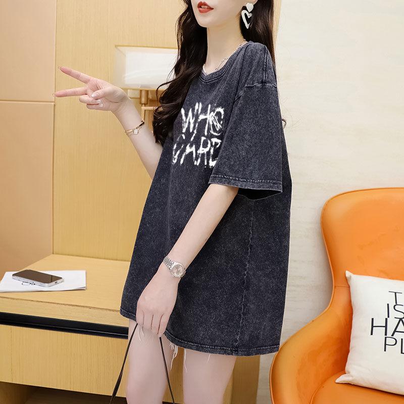 Футболка с имитацией джинсов для девочек, летняя уличная одежда с буквенным принтом, женская футболка с круглым вырезом, дизайн с короткими рукавами, топ для пар