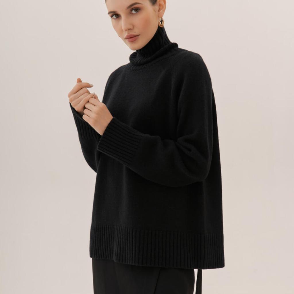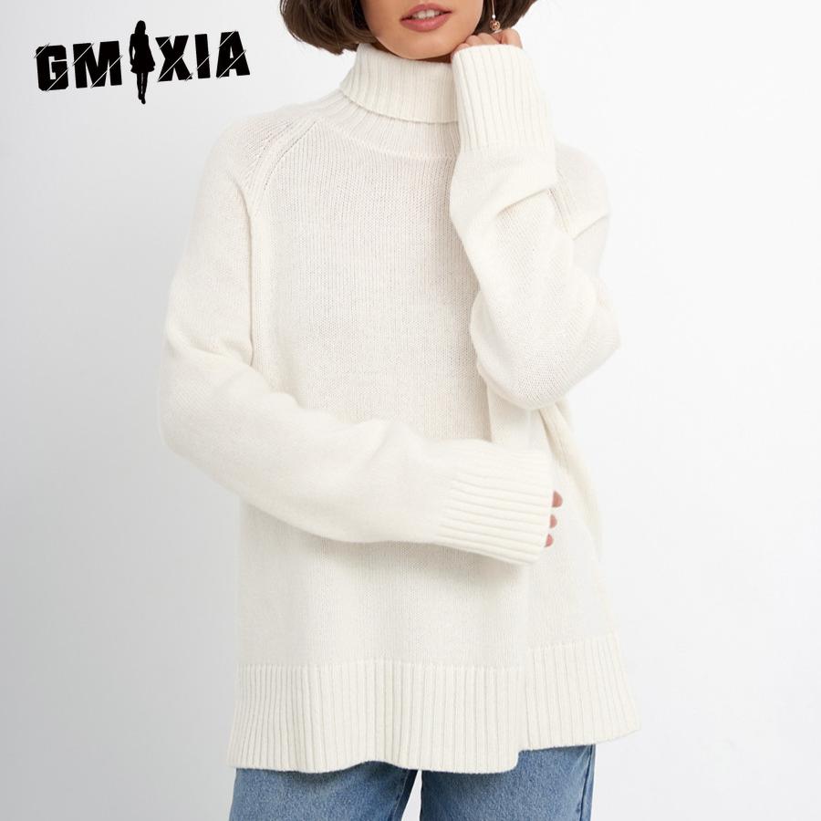 GMXIA Женский джемпер с высоким воротом, осенне-зимний, элегантный, универсальный, однотонный, с рукавами-хомутами, для поездок на работу