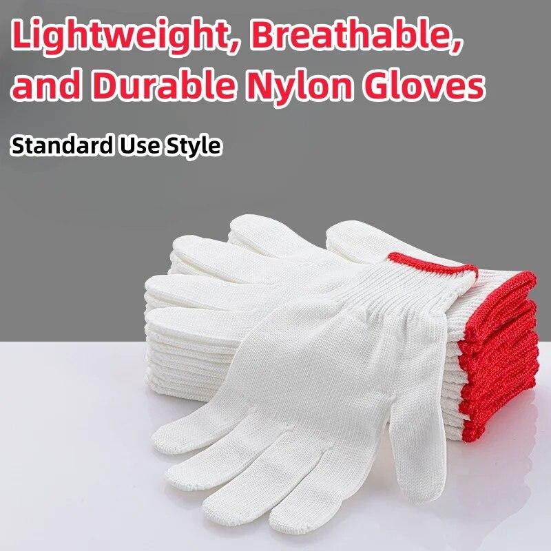 Прочные белые нейлоновые перчатки для мужчин и женщин — нескользящая ручка, дышащая ткань, впитывающая пот, идеально подходит для домашнего ремонта и домашних работ