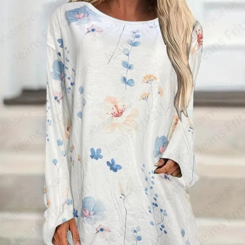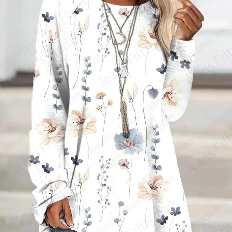 Harajuku Цветочный 3D-принт Футболки с длинным рукавом Женская мода Футболка Женские топы Футболки Длинные топы Женская футболка Туника Женская одежда