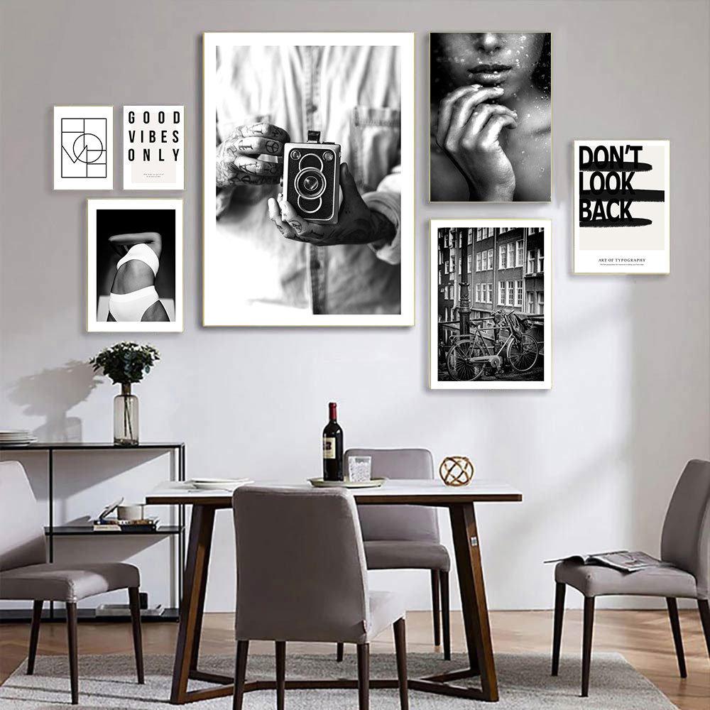 Черно-белые настенные картины Сексуальная женщина Холст Плакат Абстрактные линии Винтажный велосипед Искусство Живопись Скандинавские постеры Декор гостиной