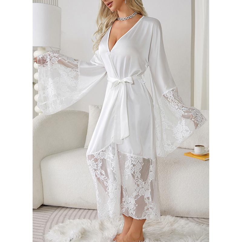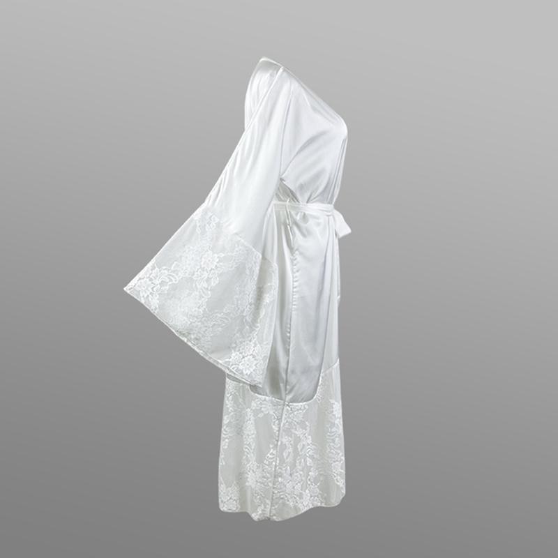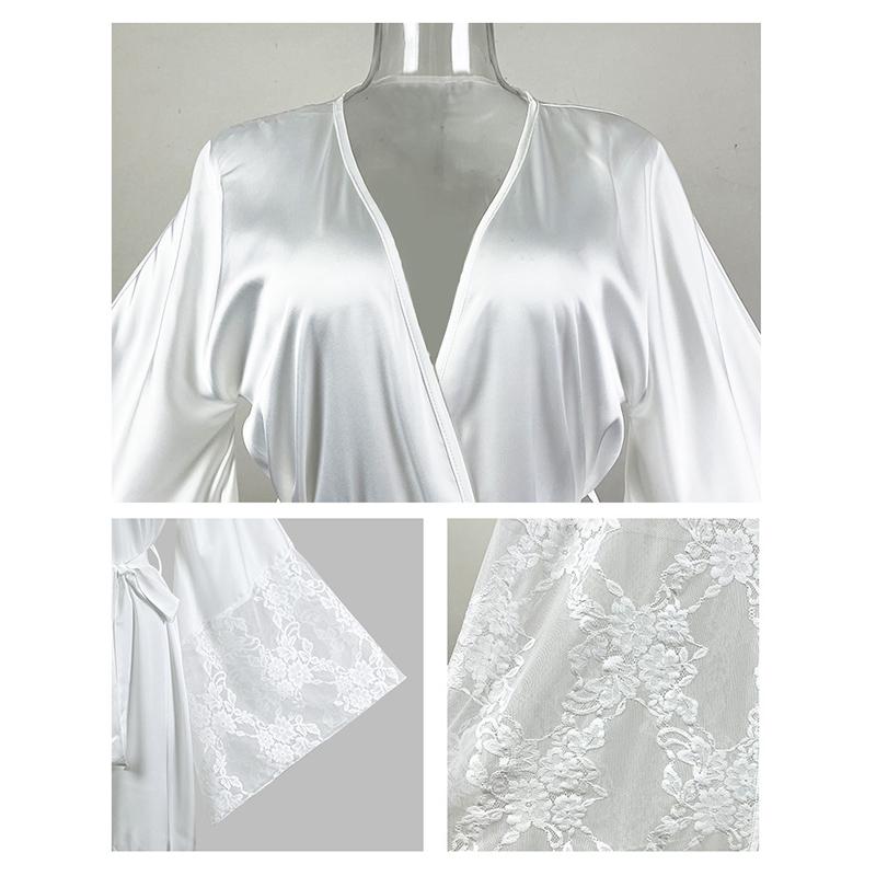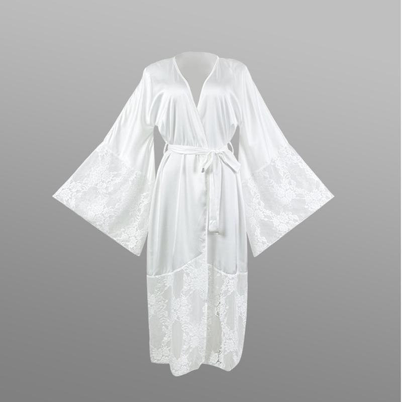 Атласный женский кардиган, кружевной халат с длинными рукавами, крутая ночная рубашка