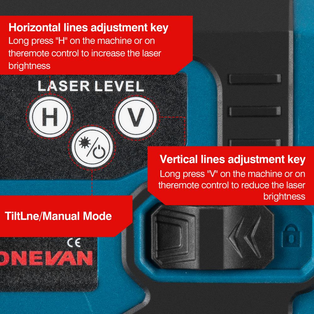 После включения питания лазера включите питание и нажмите кнопку управления, чтобы выбрать режим лазерного луча.. Когда угол наклона инструмента превышает 3 градуса, лазерный луч будет быстро мигать и сигнализировать, чтобы можно было определить, является ли место расположения инструмента ровным или нет.
