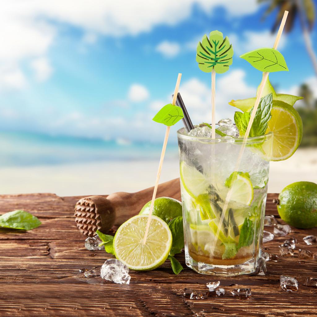 200 шт одноразовые зеленые палочки для коктейлей в виде листьев сливы зубочистки ручной работы бамбук