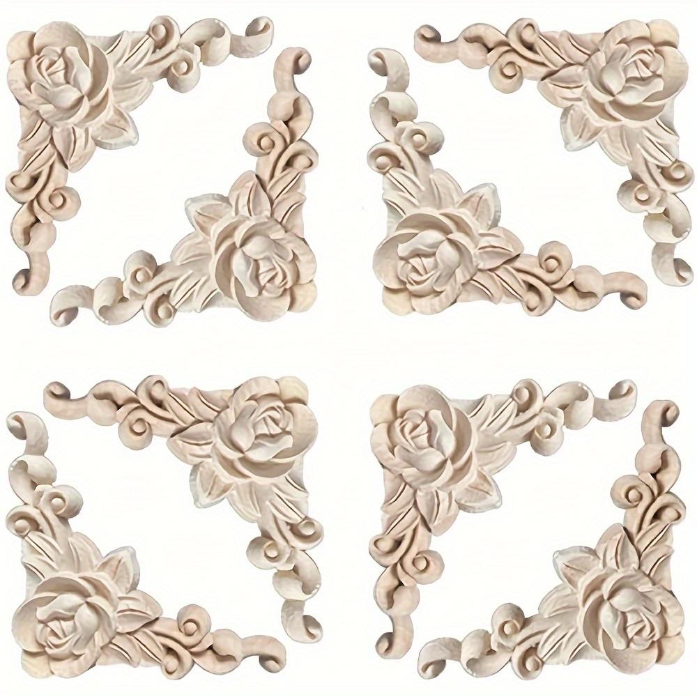 20 шт. декоративные деревянные резные аппликации в виде розы, угловая накладка 3,15 x 3,15 дюйма, сделай сам, неокрашенная деревянная резная угловая наклейка для украшения мебели