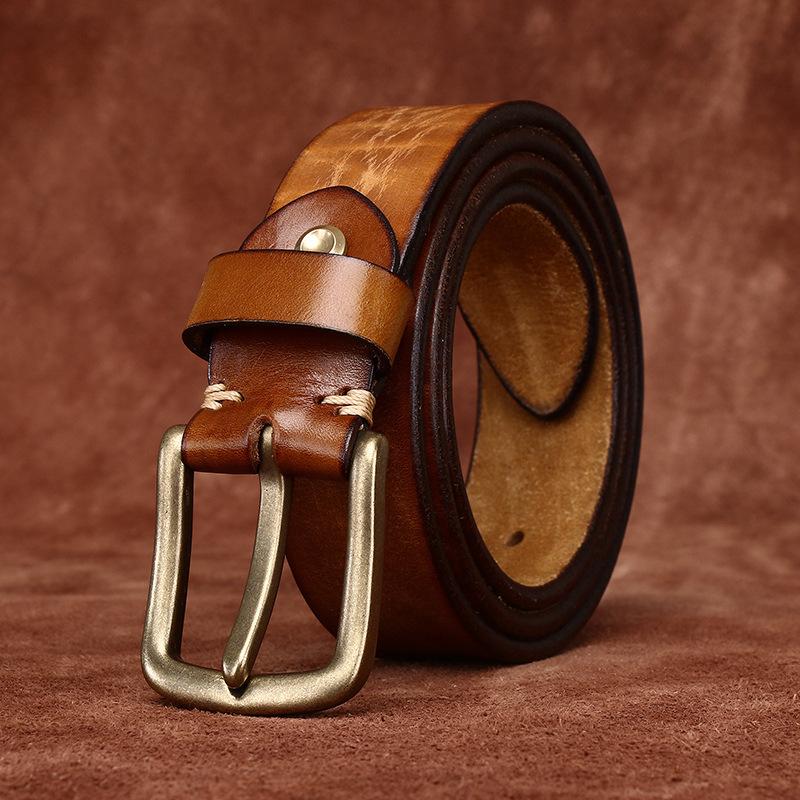 Ремень мужской винтажный матовый вымытый старый утолщенный первый слой коровьей кожи с латунной пряжкой повседневный джинсовый ремень мужской