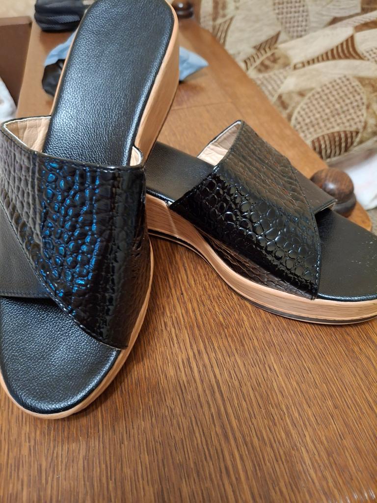 Заказала 39 размер на свой 38 размер. Подошли, у меня не широкая нога. Верх босоножек не кожзам, подошва слегка мягкая, на сезон пойдут.