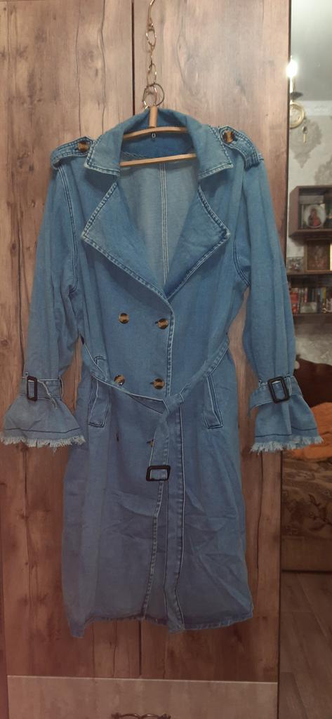 Шикарный полноценный плащ-пальто.Очень плотный,добротный джинс,красивый оттенок,отличный пошив,великолепный фасон со множеством интересных деталей.На рост 160см достаточно длинный,на 30 см ниже колена,широкий,объём красиво драпируется за счёт пояса.Самая интересная деталь-рукава,они очень длинные,прикрывают кисть руки полностью .Первоначально расстроилась,что придётся переделывать,продумывала как,ведь не обрежешь,по нижнему краю красота ввиде бахромы,но оказалось,что такая задумка ,оригинальный фасон рукава.Стягиваешь ремешком рукав и сверху поддёргиваешь,получается стильный фонарик.Изделие полностью соответствует фотографиям и спереди и сзади. Брала самый большой из предлагаемых размер на 54-й российский, подойдёт и на 56-й ,и даже 58-й.Благодарю производителя и продавца за качественную,стильную,красивую вещь!Очень довольна покупкой! Это одна из лучших покупок на Джуме!