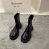 Женские модные ботильоны на платформе с выступающей подошвой, ботильоны «Челси» без шнуровки на массивном блочном каблуке, армейские ботинки из искусственной кожи для женщин, повседневные высокие туфли с молнией сзади