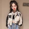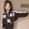 Короткий бейсбольный костюм с круглым вырезом для девочек на весну и осень, детский кардиган среднего и большого размера, повседневная куртка на молнии