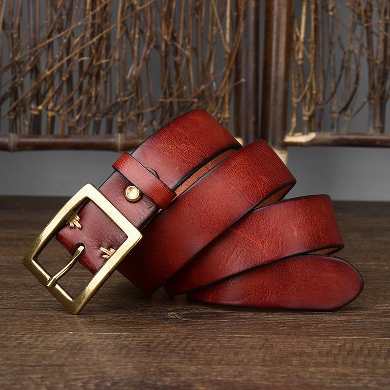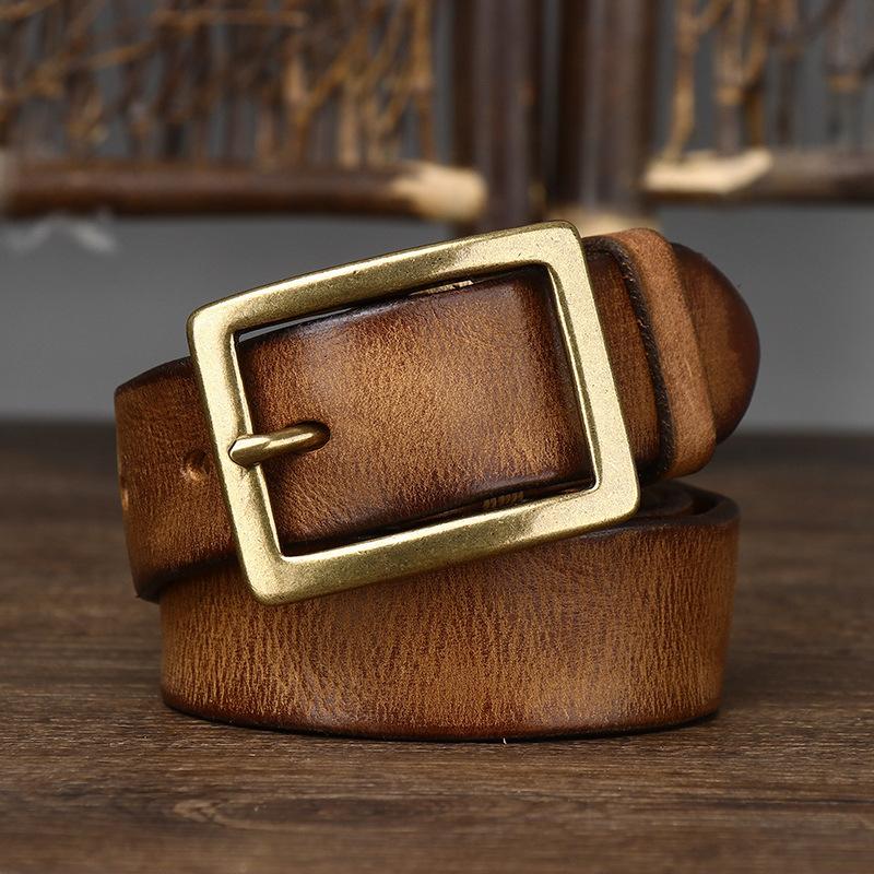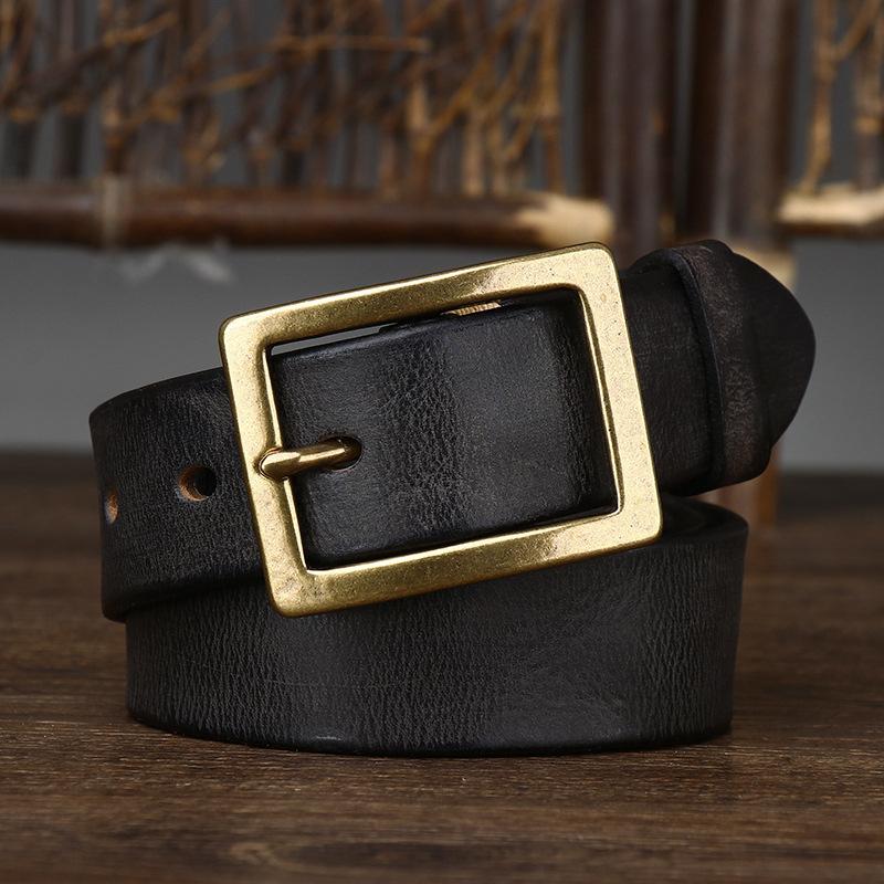 Ремень унисекс, кожаный ремень с пряжкой, первый слой, винтажный плиссированный джинсовый ремень из натуральной кожи крупного рогатого скота
