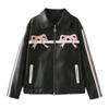 Женская зимняя куртка, женское винтажное пальто из искусственной кожи, модное пальто из искусственной кожи с воротником с лацканами и бантом на молнии, женское повседневная одежда
