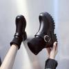 Трикотажные женские ботинки, женские ботинки на толстой подошве высотой 4,5 см, новинка зимы 2024, однотонная женская обувь с круглым носком и застежкой, Zapatos De Mujer