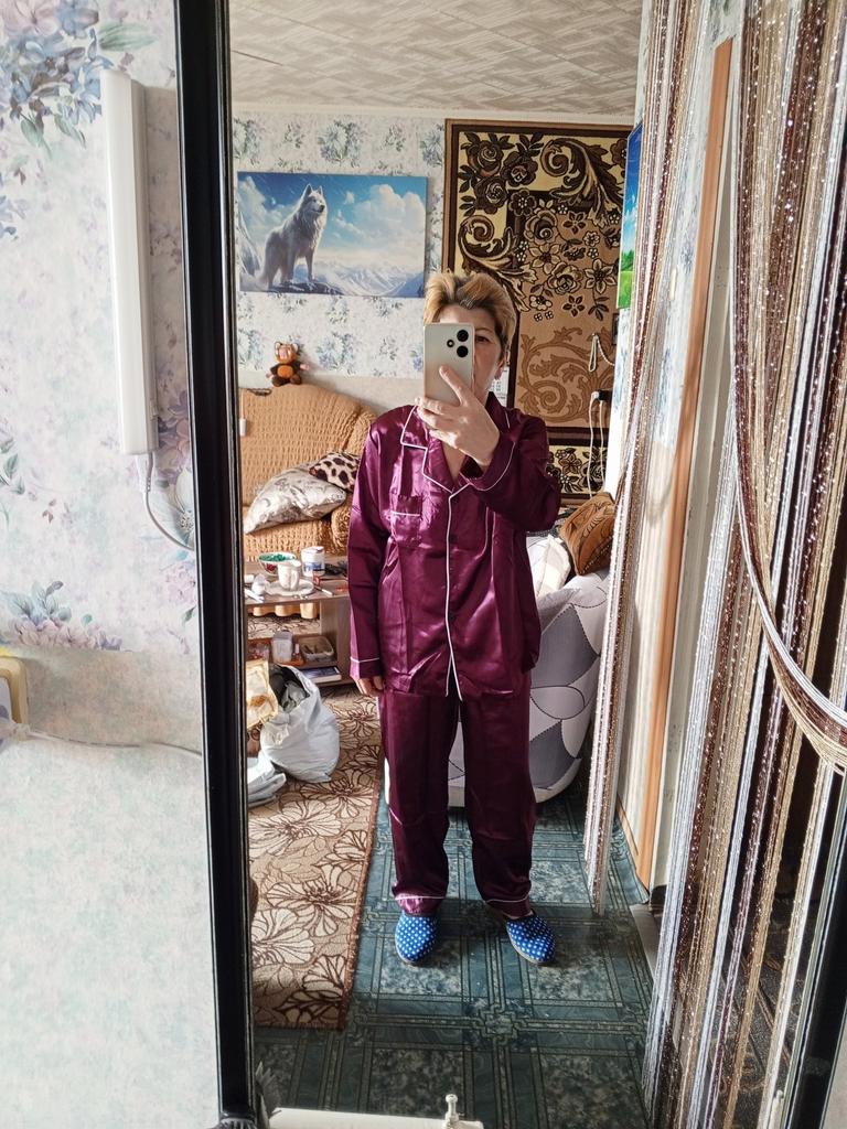 Пижама красивая, но я всегда заказывала на свой 44-ый раз. XXL и было всё нормально, а эта пижама прямо-таки не просто свободная, а именно большая, надо было брать XL и то, наверное, было бы свободно. Спать, конечно, в ней буду, куда ж деваться, всё равно спасибо и к покупке рекомендую. 👍👍👍.