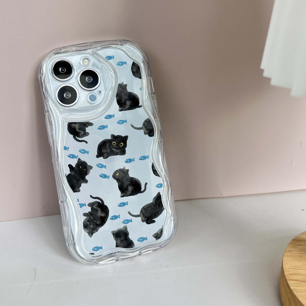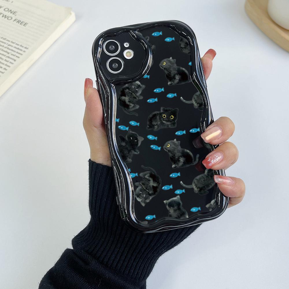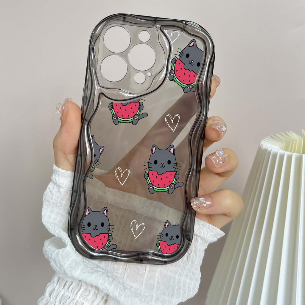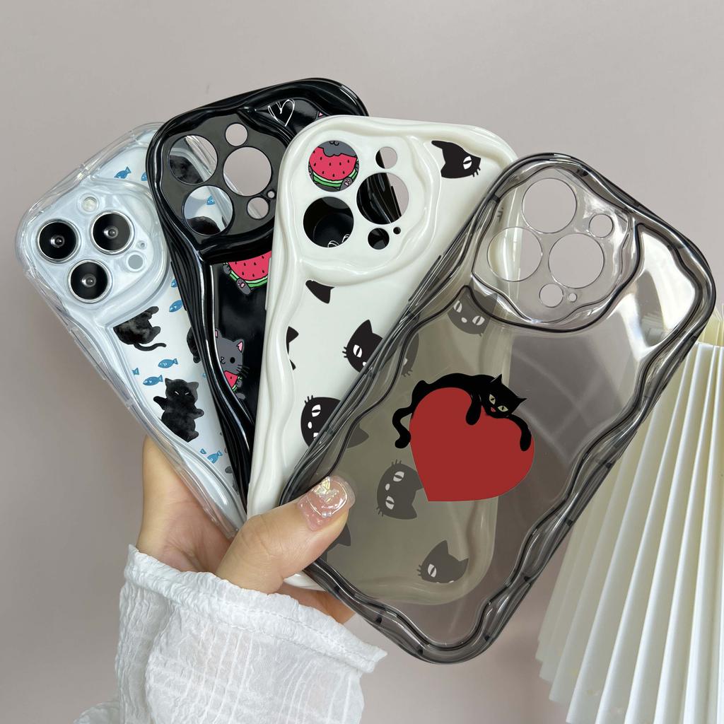 LZ8 мультяшный кот, милые художественные прозрачные мягкие волнистые чехлы для телефонов для iPhone 15 13 Pro Max 12 mini 14 8 Plus XS Max XR 6, защитная задняя крышка