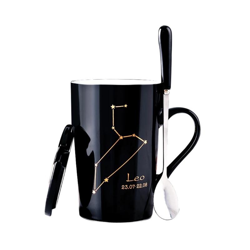 Керамические кружки 12 созвездий, креативные кружки с крышкой-ложкой, черная кружка, фарфоровая кружка со знаком зодиака, молоко, кофейная чашка, посуда для напитков, подарок для пар