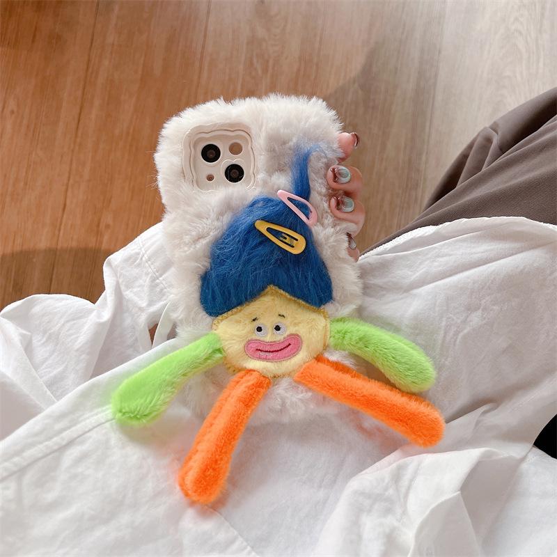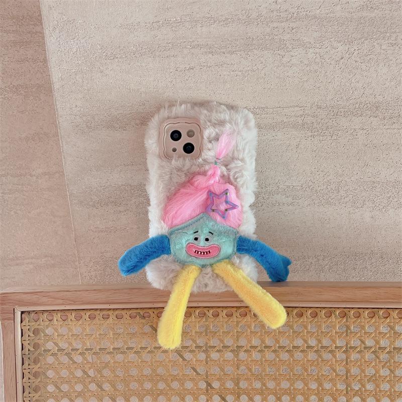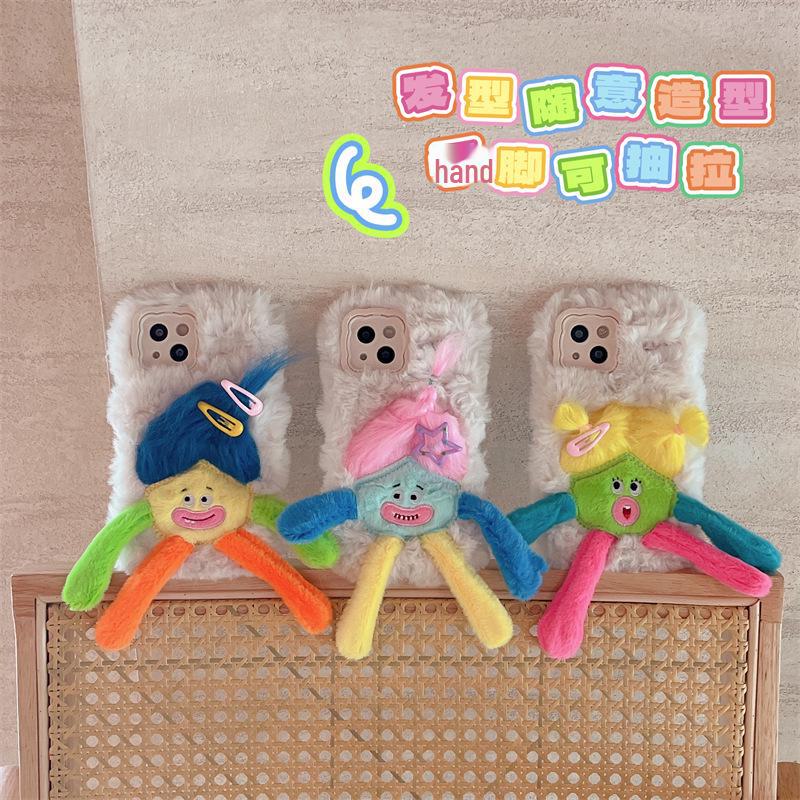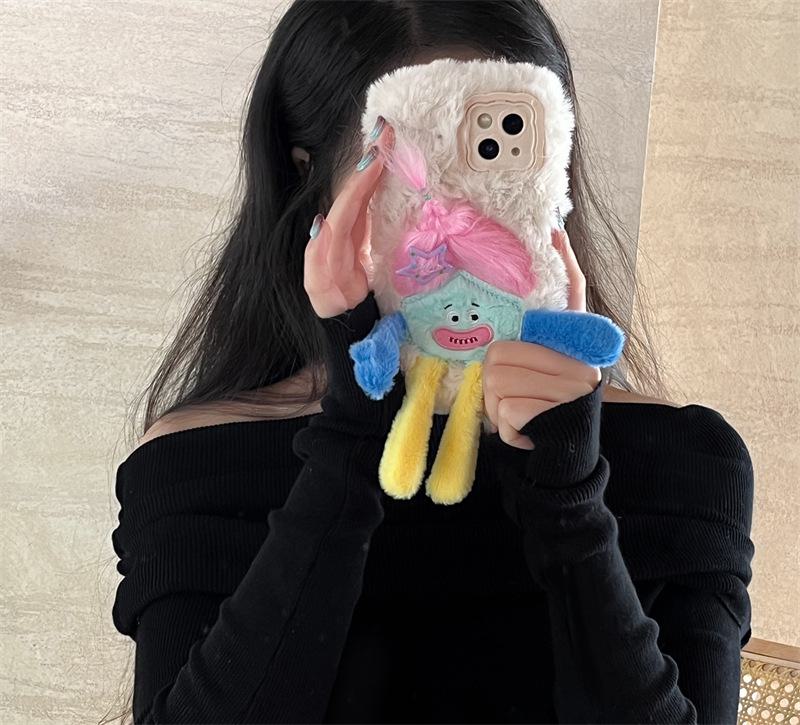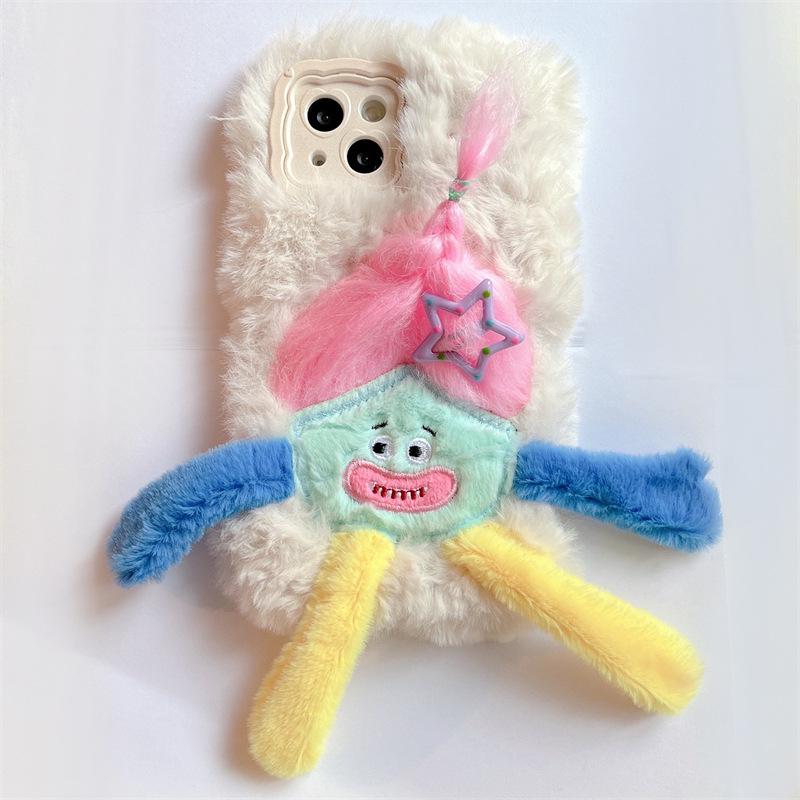 Чехол для телефона Dopamine Apple 15 Plush Cartoon Doll с кронштейном - милый силиконовый дизайн против падения
