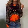 Женская мода повседневная блузка с длинным рукавом и принтом на Хэллоуин с круглым вырезом