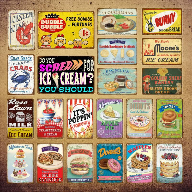 Еда, декор для хлеба, мороженое, молоко, клубника, соленые огурцы, вафли, металлические жестяные вывески, винтажный постер, настенная художественная табличка YI-010 — купить товар онлайн с бесплатной доставкой по всему миру!