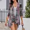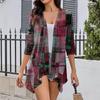 Женский кардиган с нестандартным принтом и рукавами 3/4, повседневная накидка с карманами