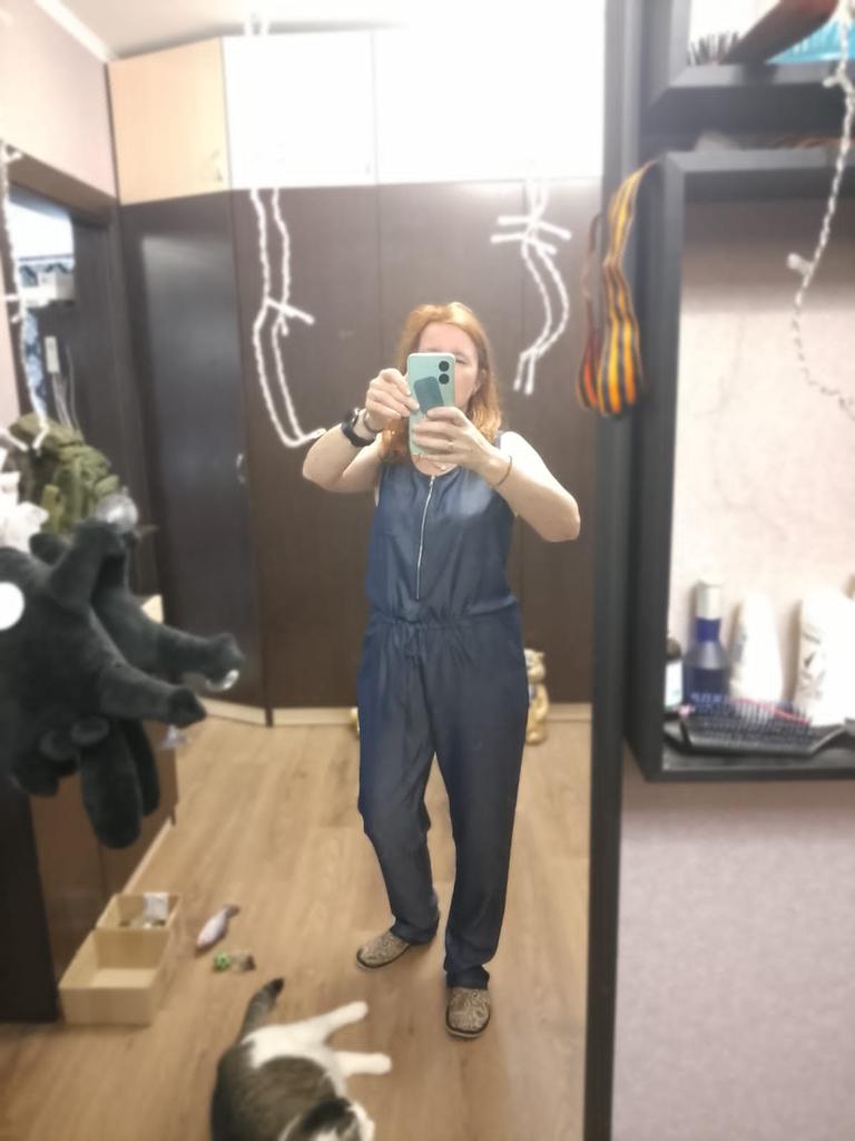 Очень понравился комбинезон. Долго искала что-то подобное: чтоб сидел как надо! Взяла размер S,, выбирала по параметрам продавца. Мои параметры: ОГ 86, ОТ 73, ОБ 102