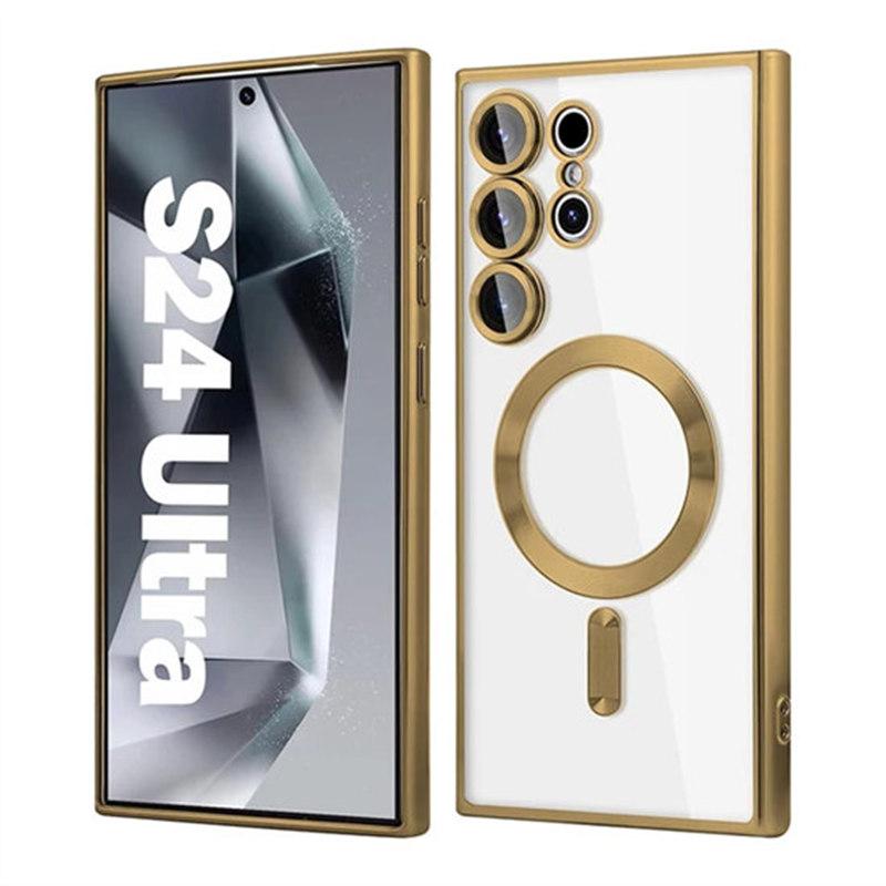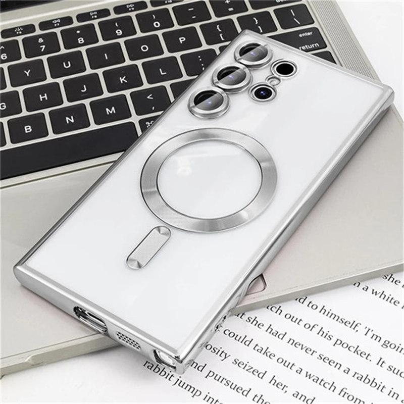 Гальванический чехол Magsafe для Samsung Galaxy S24 S23 S22 S21 Note 20 Ultra S23 FE, мягкая магнитная защитная стеклянная пленка для линз