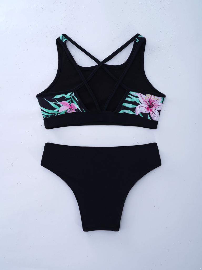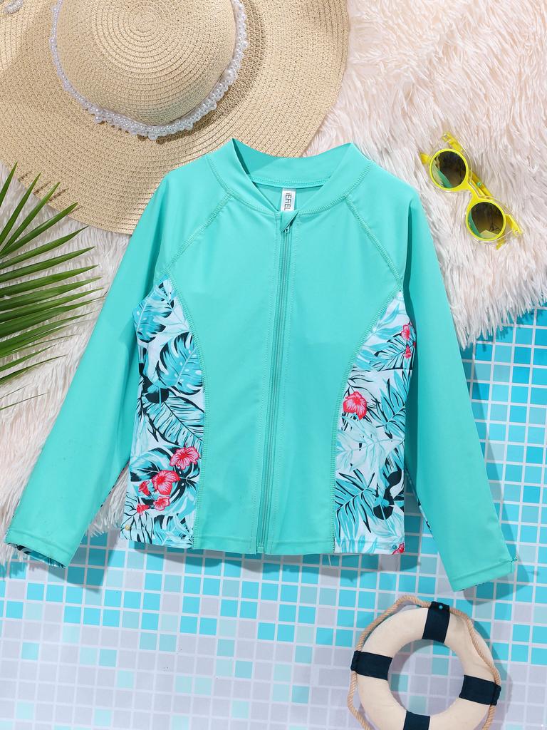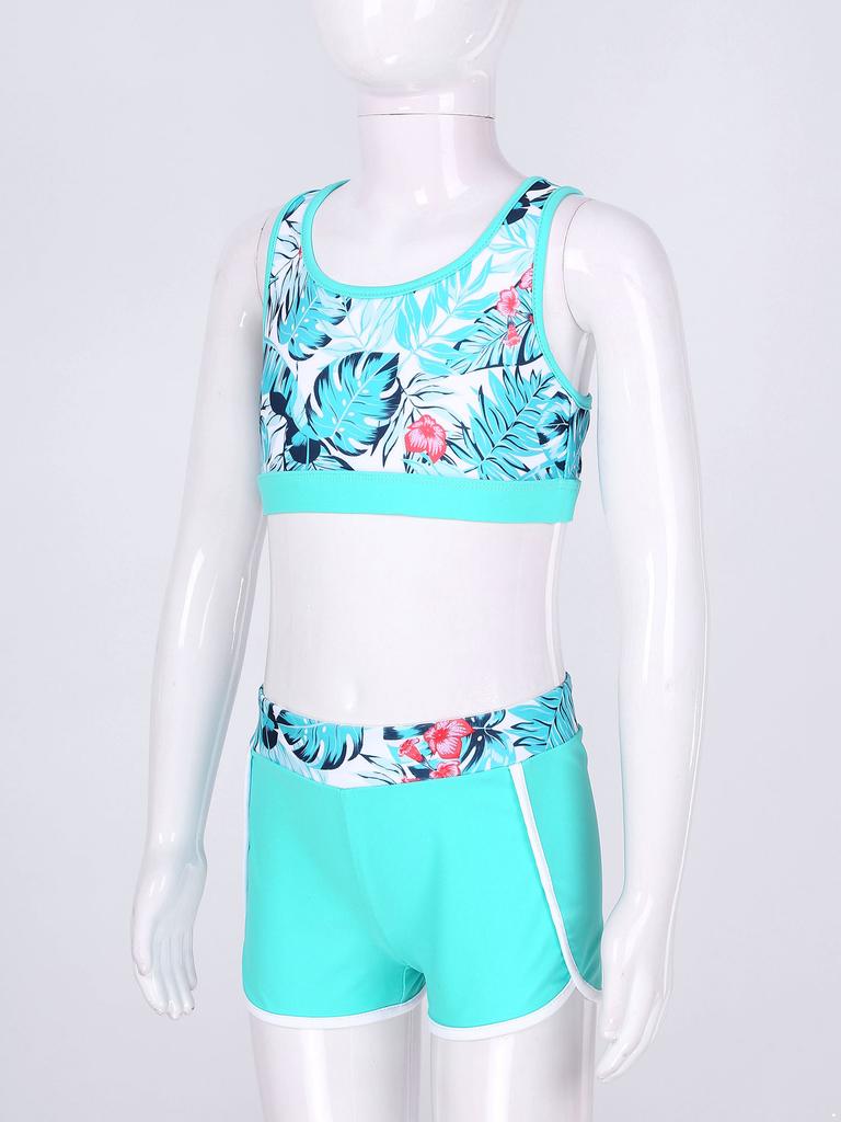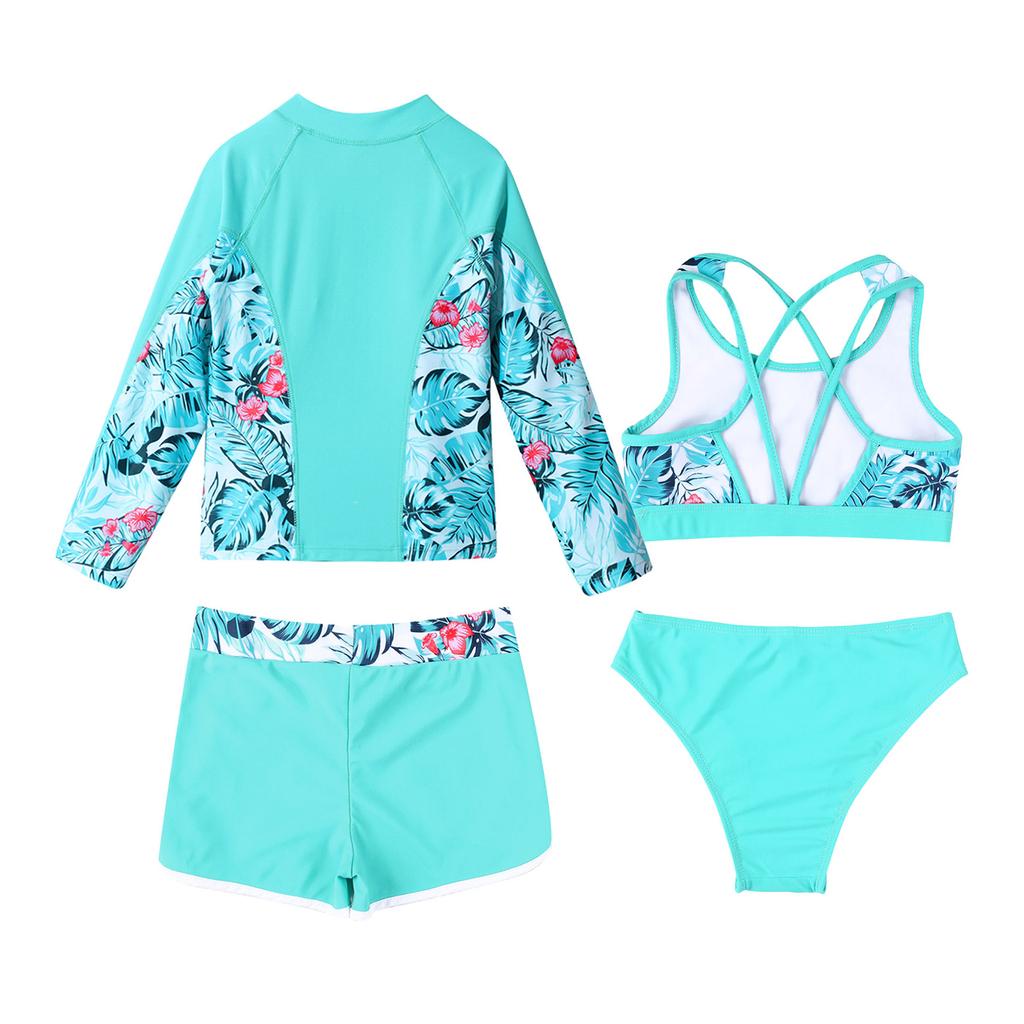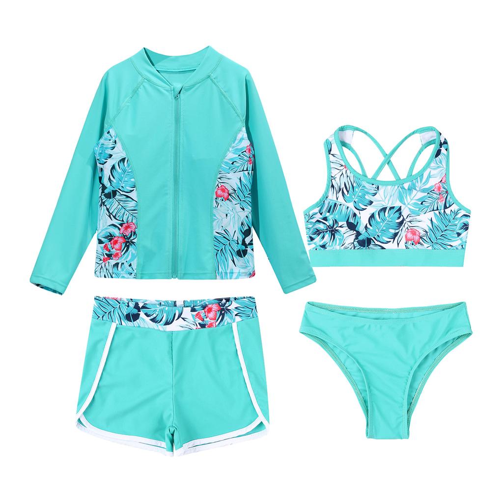 Комплект из 4 предметов для девочек с принтом, верхняя одежда с застежкой-молнией спереди, укороченный топ без рукавов с бретельками сзади и трусы-шорты, наряд для плавания