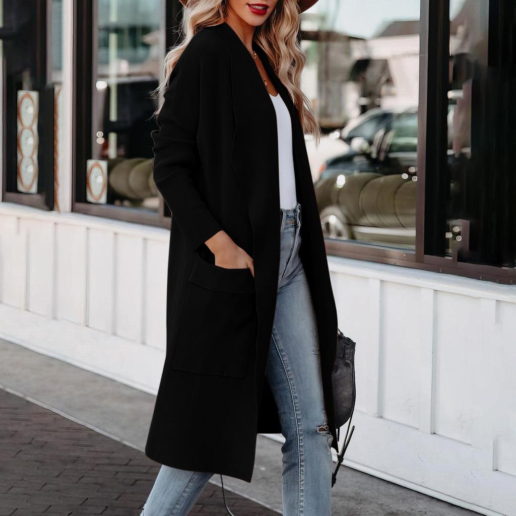 Особенности: драпированный перед, карманы, длинный рукав, кардиган длиной до бедра, трикотажный, свободный крой.