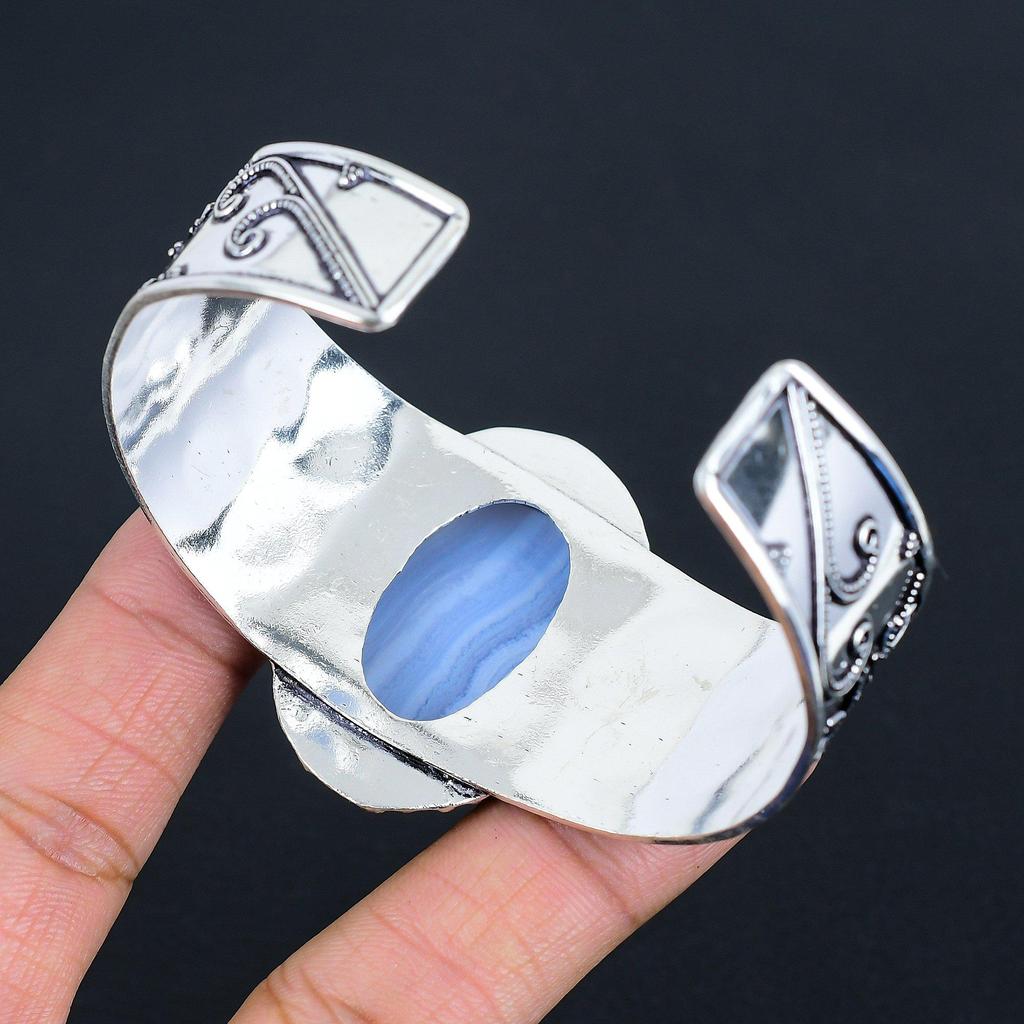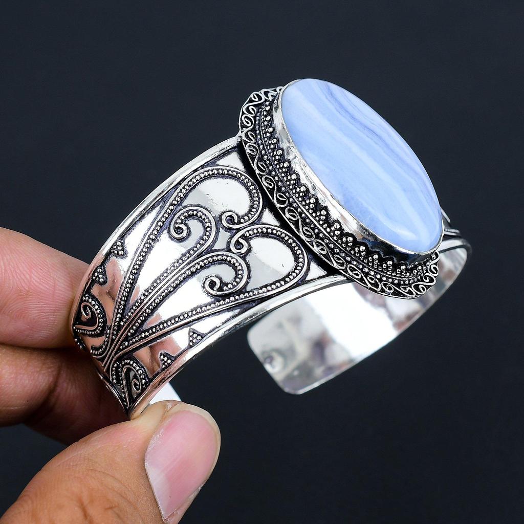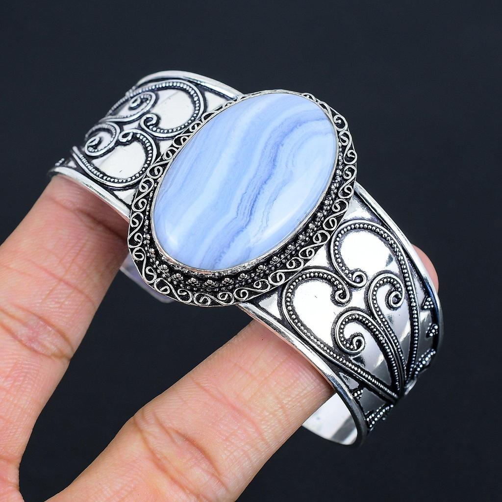 Натуральный синий кружевной браслет из агата с драгоценными камнями | Серебро 925 пробы | Регулируемый браслет | Серебряные браслеты ручной работы для женщин и девочек