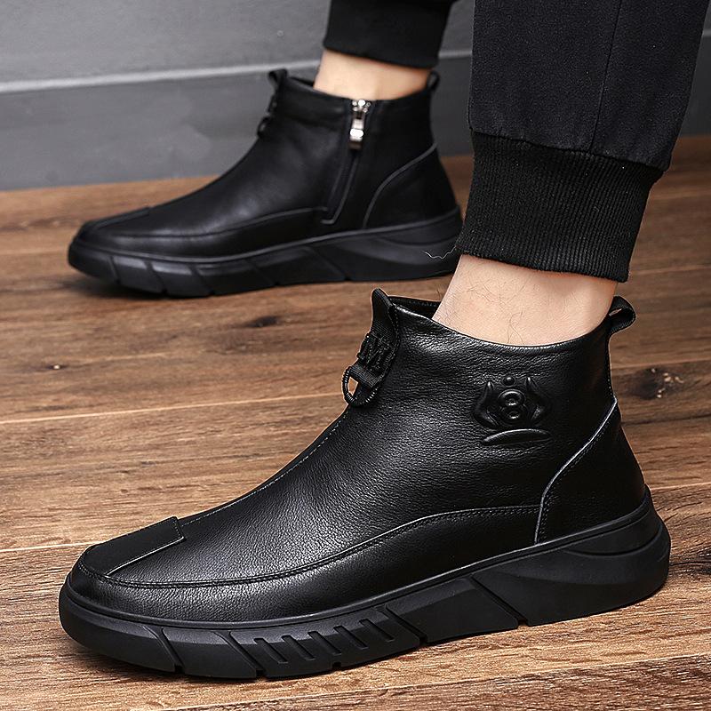 Осенне-зимняя новая мужская обувь на флисовой подкладке, две хлопковые ботинки средней высоты, повседневная кожаная обувь, хлопковая обувь, мужская обувь