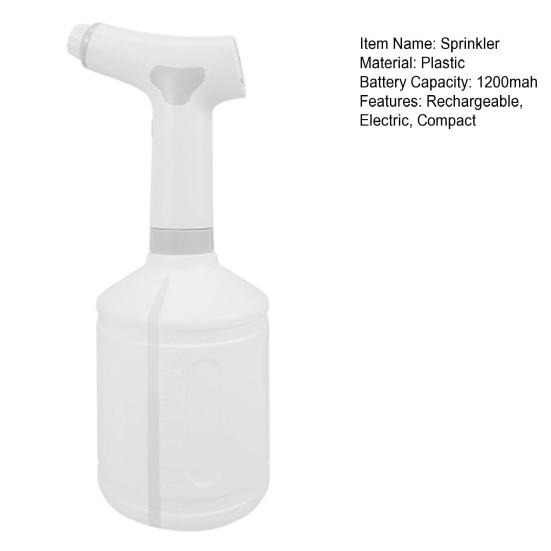 Этим небольшим электрическим распылителем воды емкостью 1 л легко управлять одной рукой, что позволяет экономить время и энергию.. Видимый уровень воды и прозрачная конструкция позволяют легко контролировать уровень воды и доливать ее при необходимости.. Удлиненная конструкция рукоятки обеспечивает удобное удержание во время использования.. Этот электрический распылитель идеально подходит для широкого спектра применений, включая полив сада, опрыскивание растений в помещении и на открытом воздухе, увлажнение воздуха и уборку дома. Это универсальный инструмент для любого ухода за растениями.. Не забудьте тщательно очистить бутылку после использования других растворов, кроме воды, для поддержания оптимальной производительности.