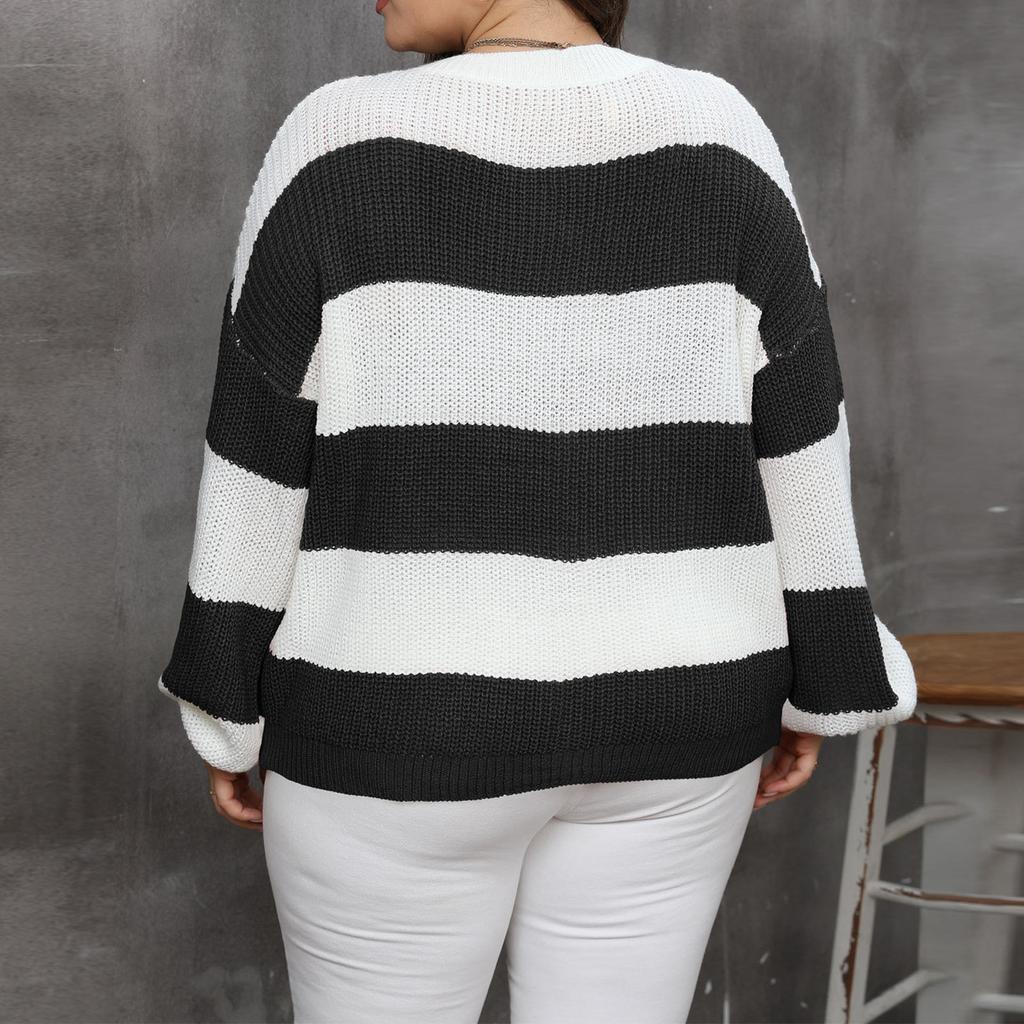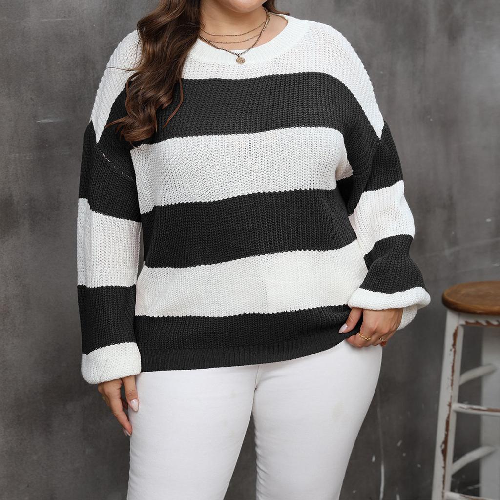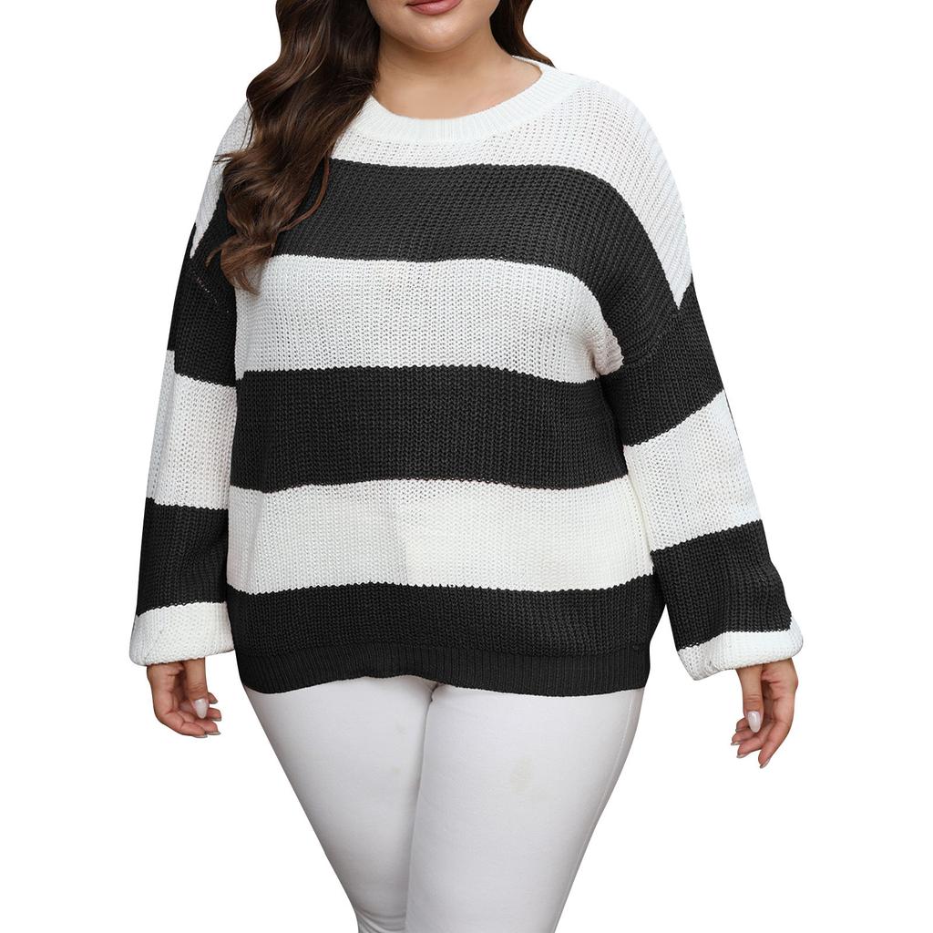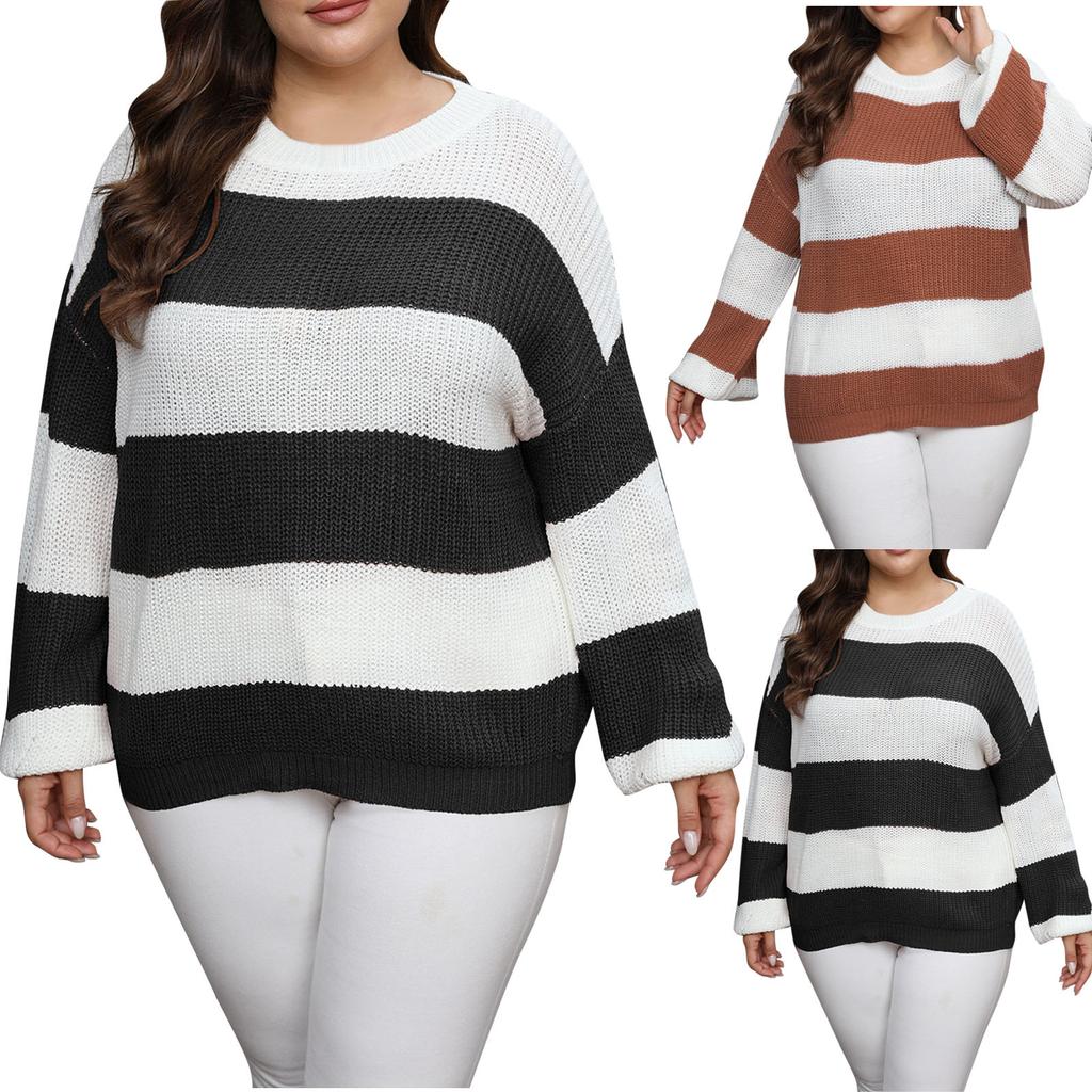 Женский трикотаж в полоску, межцветный пуловер, свободный свитер с круглым вырезом