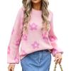 Женский повседневный модный удобный пуловер с круглым вырезом контрастного цвета с цветочным принтом и длинным рукавом уличный тренд вязаный свитер
