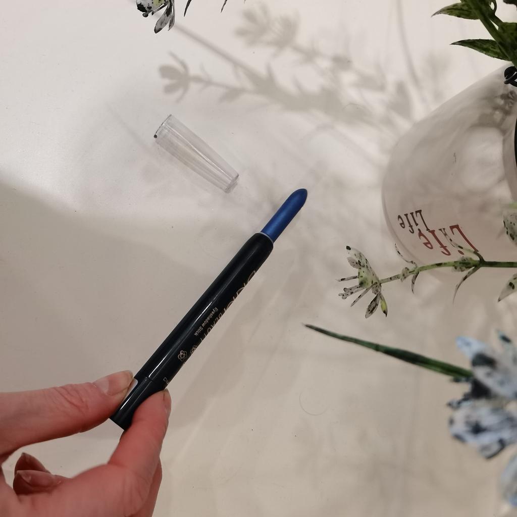 ТЕНИ - КАРАНДАШ ДЛЯ ВЕК Цвет # 13 Синий перламутровый По текстуре кремовый, довольно жирный Стержень толстый, шириной примерно =7-8 мм. В выкрученном виде длина = 3,5 см. Цвет стержня значительно ярче, чем красит на коже. Очень, нежный приятный запах 🌸 👁️Кожа на моих верхних веках жирная, поэтому Если я делаю стрелки, то в течении дня, тени расплывается по веку. Пробовала на все веко растушевать, со временем изчезает насыщенность или немного собирается в сгибах. Классика жанра - этим грешат тени кремовой текстуры✋ 👉Поэтому подойдёт такой карандашик для век с не жирной кожей. 👉Продавец пишет водостойкий, на само деле не так! Качество неплохое, могу рекомендовать.