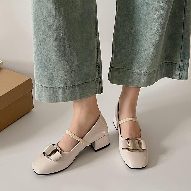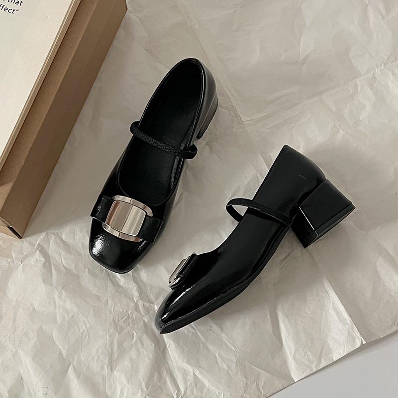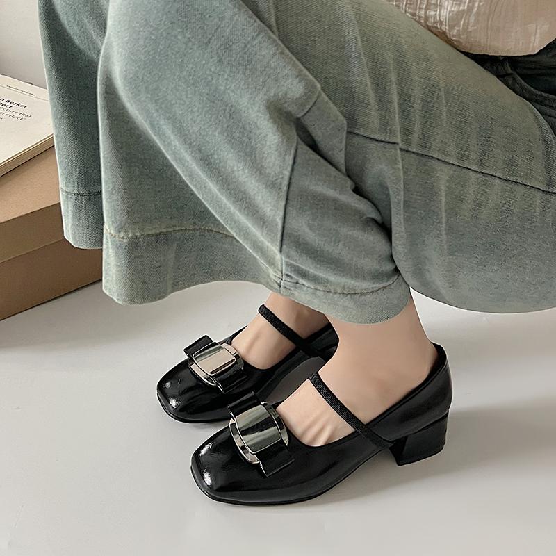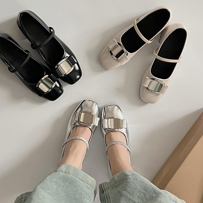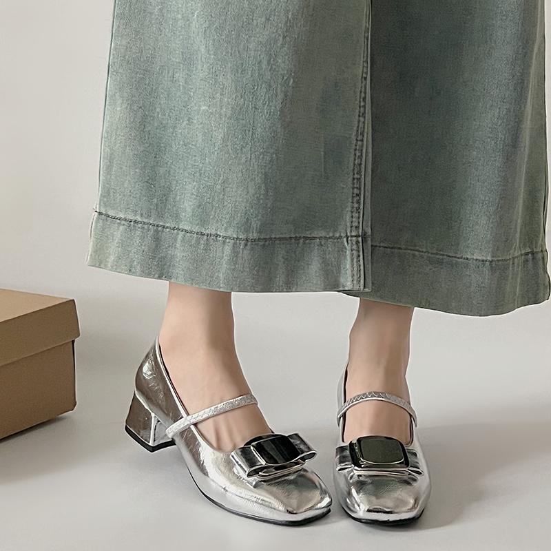 Весенние туфли Мэри Джейн в стиле ретро, женские серебряные универсальные туфли на толстом каблуке с круглым носком и французским высоким каблуком, пустые туфли