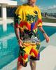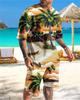 Футболки с принтом Hawaiian Coconut Tree 3D, комплекты с шортами, мужские спортивные костюмы, свободная футболка с коротким рукавом, пляжные шорты, мужские комплекты