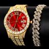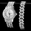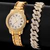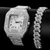 Мужской браслет-цепочка в стиле хип-хоп с кубинскими звеньями и наручными часами, блестящая цепочка со льдом, полный горный хрусталь, хрустальные браслеты, ювелирные изделия
