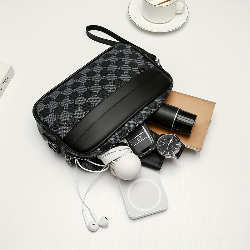 Стильная мужская сумка через плечо из искусственной кожи — универсальная сумка через плечо и клатч, регулируемый ремешок, черная