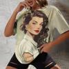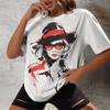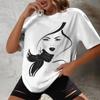 Летняя уличная повседневная и удобная повседневная женская футболка 2024 года, минималистичная футболка с круглым вырезом и короткими рукавами с принтом и портретом