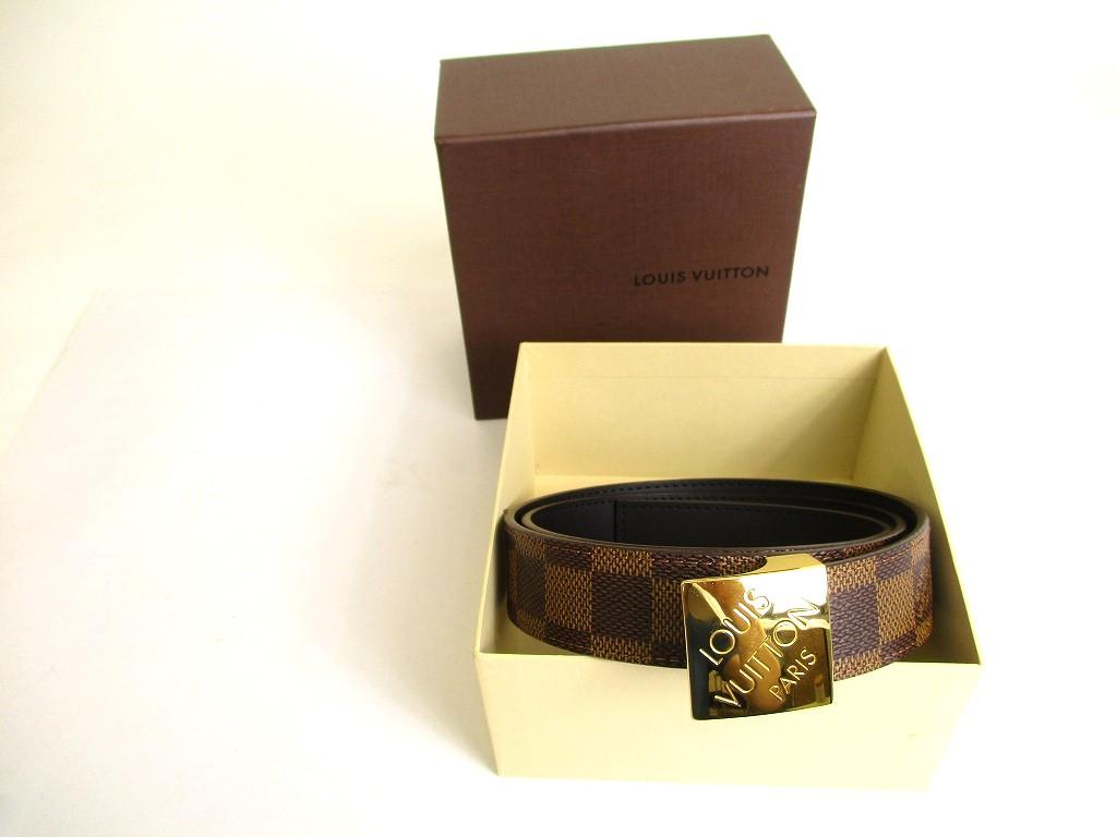 Подлинный ремень LOUIS VUITTON Damier Brown с золотой пряжкой, размер талии 75-85 см, S #9812, восстановленный